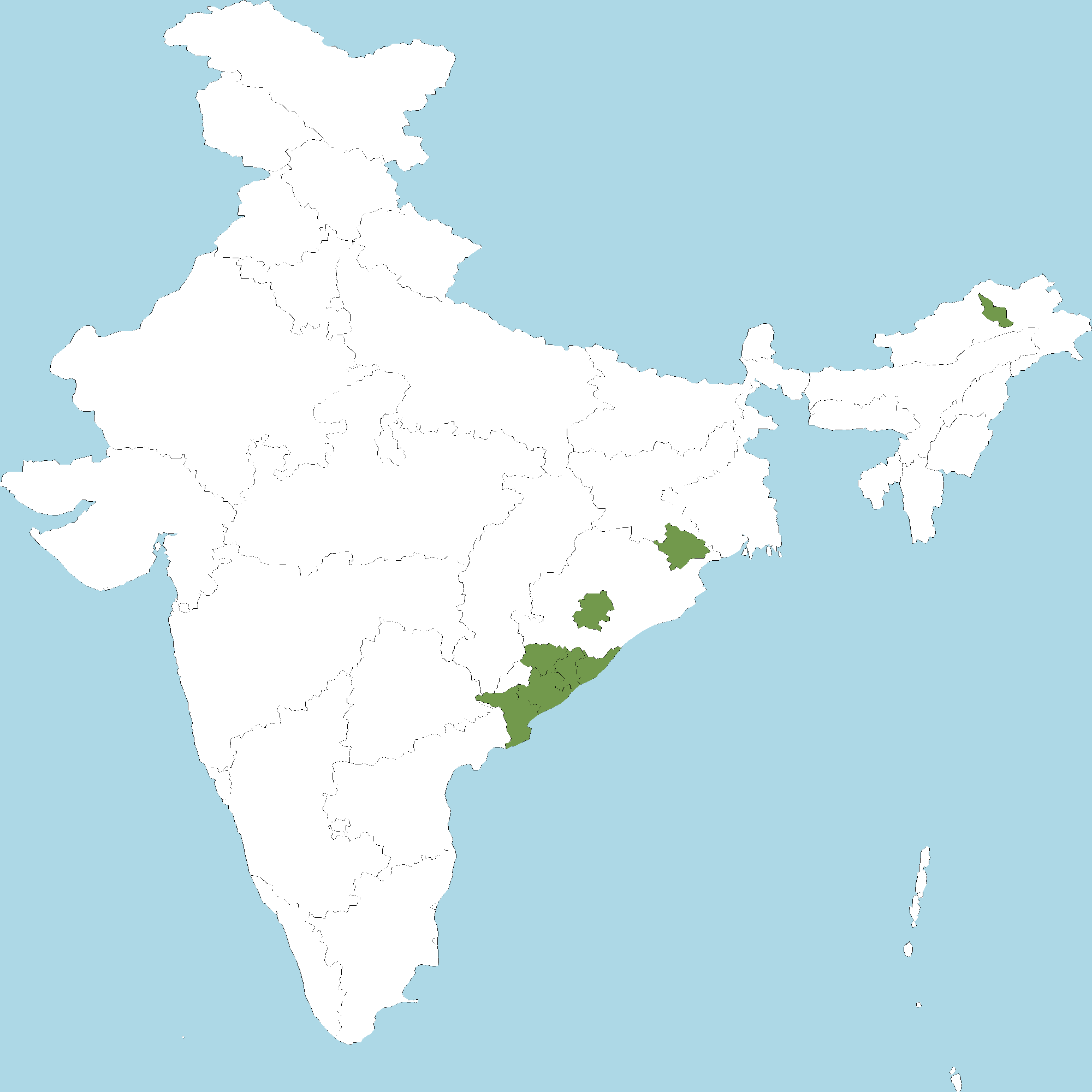 • Andhra Pradesh : Srikakulam district,. Visakhapatnam district, Vizianagaram district, East Godavari district