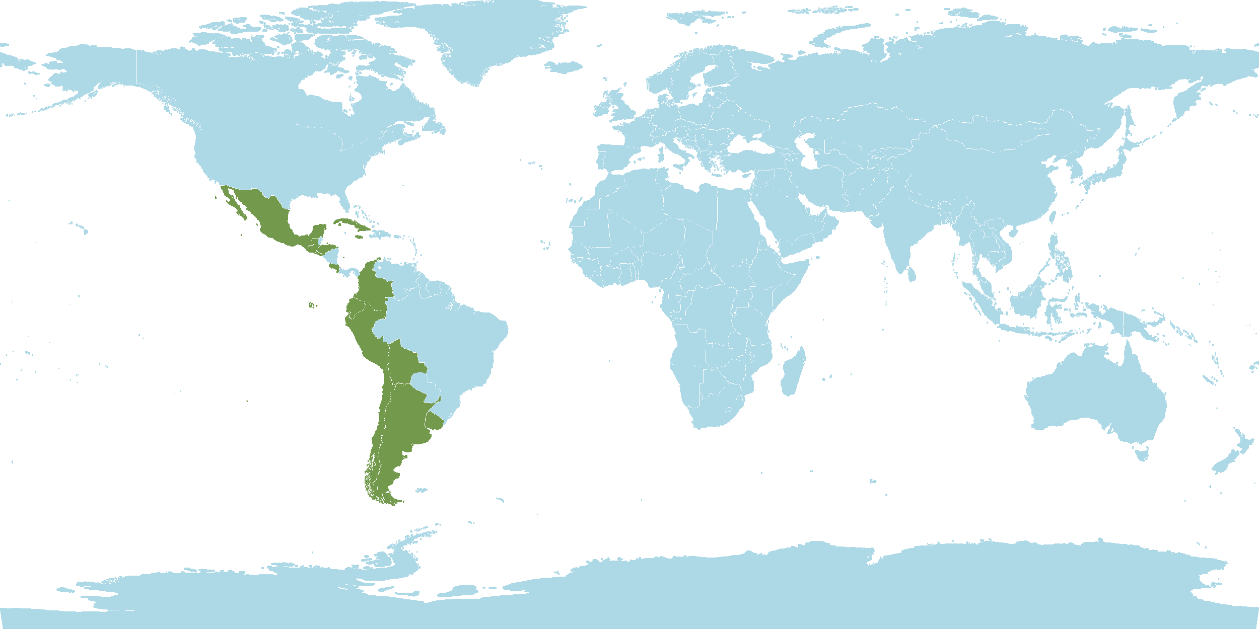 - World Distribution : Argentina, Arizona, Bolivia, California, Chile, Colombia, Costa Rica, Cuba, Desventurados Islands, Ecuador, El Salvador, Guatemala, Honduras, Jamaica, Juan Fernández Islands, Mexico, New Mexico, Peru, Texas, Uruguay