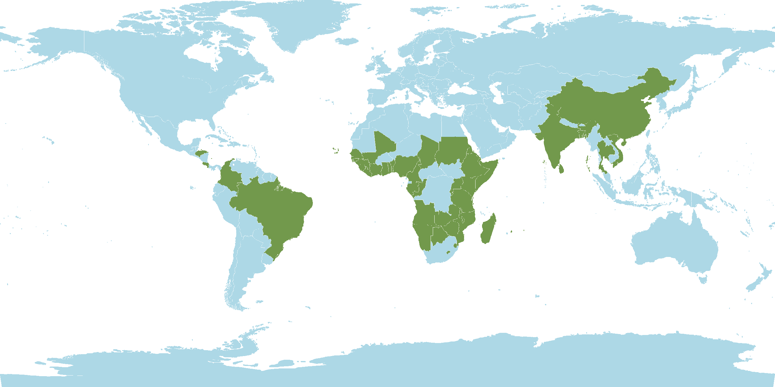 - World Distribution : Andaman Islands, Angola, Bangladesh, Benin, Botswana, Burkina, Burundi, Cameroon, Cape Provinces, Cape Verde, Caprivi Strip, Central African Repu, Chad, Congo, Djibouti, Eritrea, Ethiopia, Free State, Gabon, Gambia, Ghana, Guinea, Guinea-Bissau, Gulf of Guinea Islands, India, Ivory Coast, Kenya, KwaZulu-Natal, Lesotho, Liberia, Madagascar, Malawi, Mali, Mauritius, Mozambique, Namibia, Nigeria, Northern Provinces, Rwanda, Réunion, Senegal, Sierra Leone, Socotra, Somalia, Sri Lanka, Sudan, Swaziland, Tanzania, Togo, Uganda, Zambia, Zaïre, Zimbabwe, Borneo, Brazil, Caroline Islands, China, Colombia, Costa Rica, Hainan, Honduras, Jawa, Malaya, New Guinea, Panamá, Puerto Rico, Sumatera, Thailand, Trinidad-Tobago, Vietnam