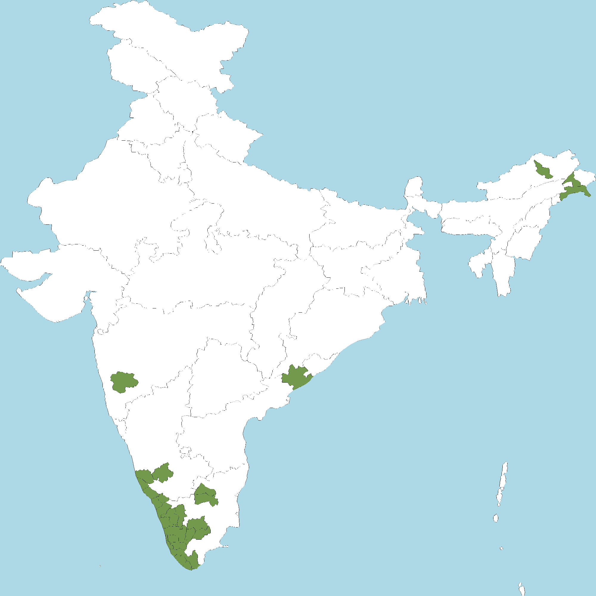 - Tamil Nadu : Salem district, Dharmapuri district, Coimbatore district, Dindigul district, Kanyakumari district, Madurai district, The Nilgiri district, Theni district, Tirunelveli district