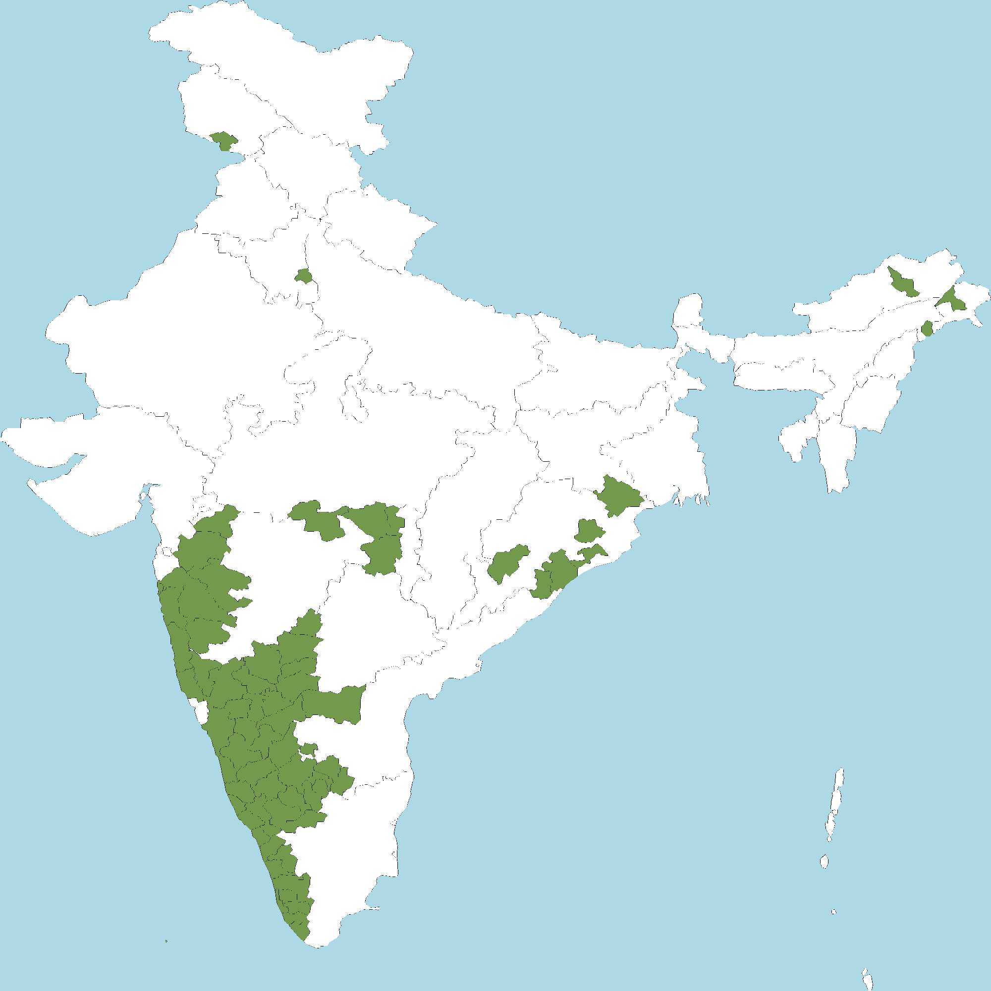 - Odisha : Kalahandi district, Gajapati district, Ganjam district, Dhenkanal district, Khordha district, Mayurbhanj district