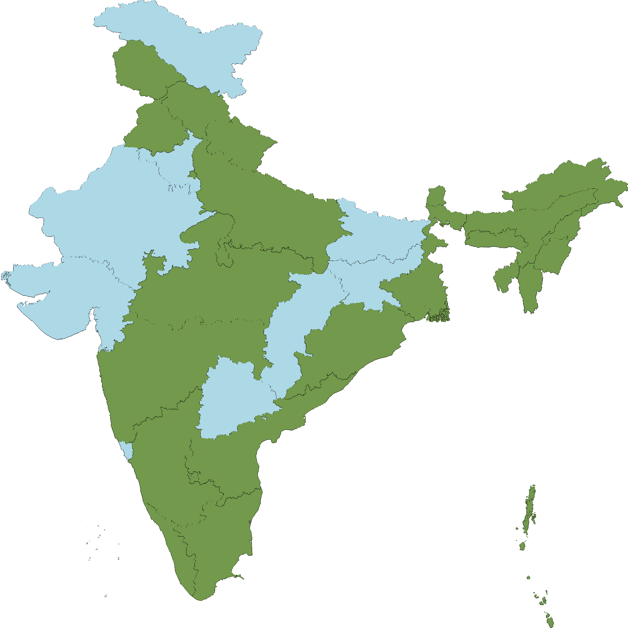 - Karnataka : Dakshina Kannada district, Kodagu (Coorg) district, Chikkamagaluru district, Davanagare district, Shivamogga district, Udupi district, Uttara Kannada district