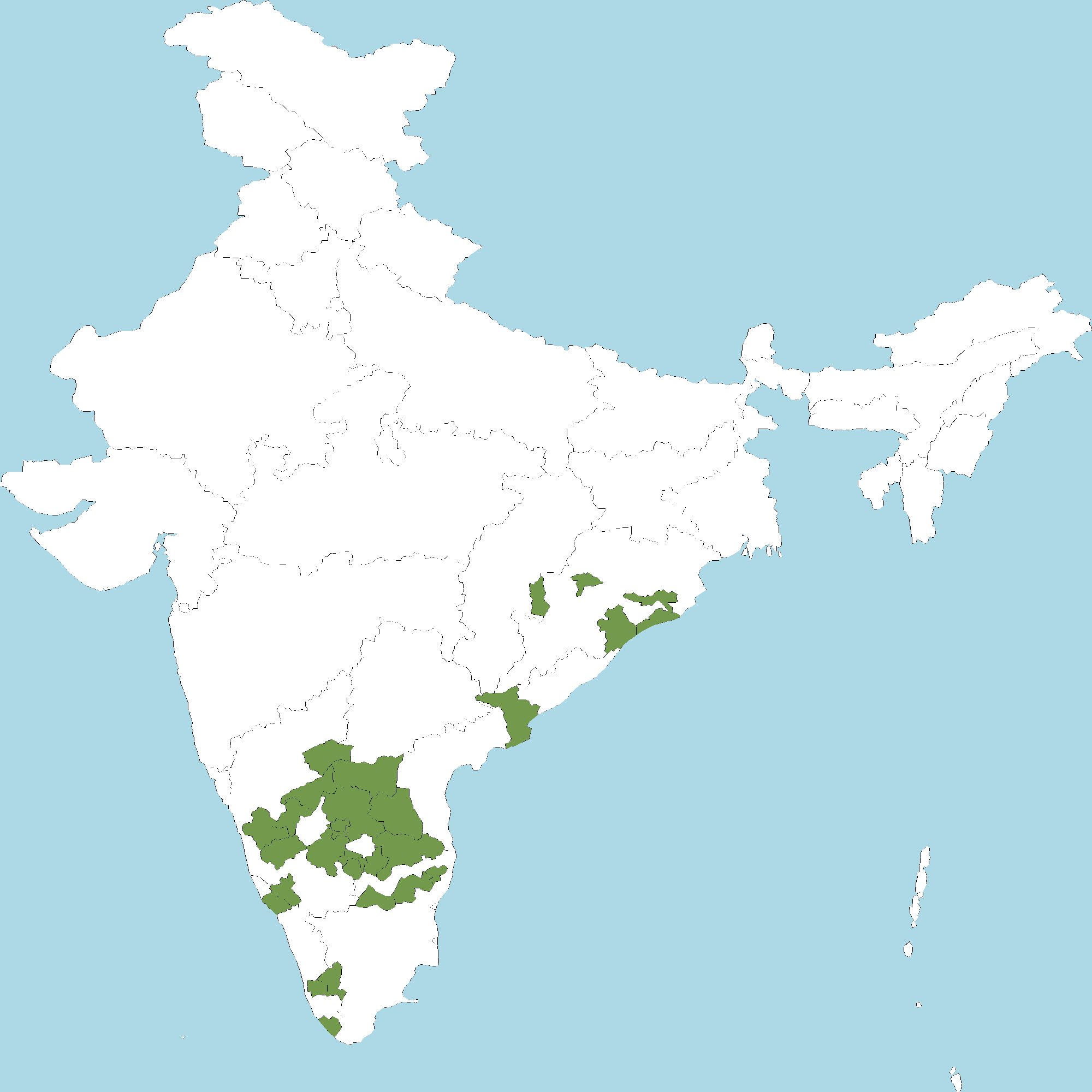 - Andhra Pradesh : Anantapur district, Y.S.R. Kadapa district, Chittoor district, Kurnool district, East Godavari district, Chittoor district