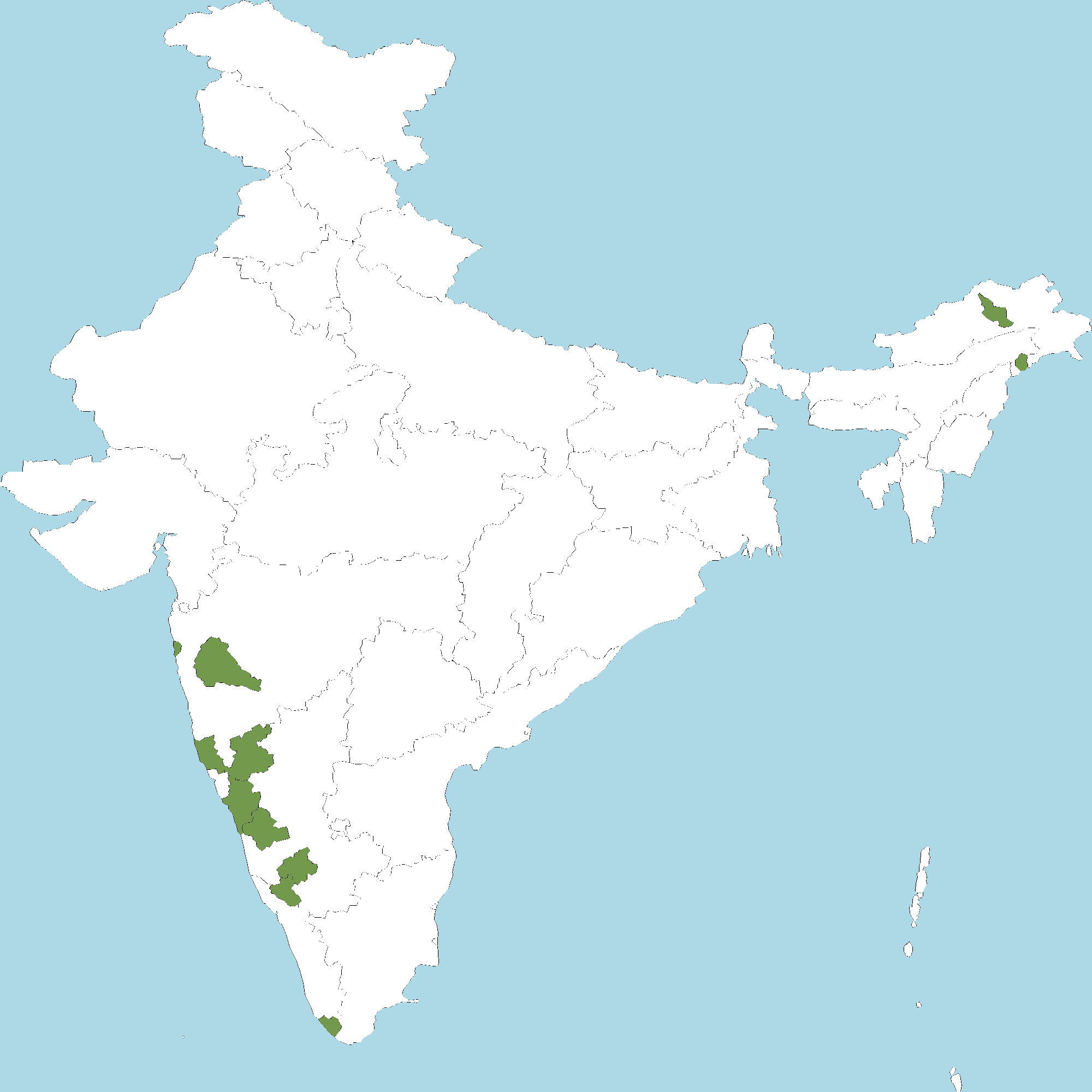 - Native : Andaman Islands, Bangladesh, Bhutan, India, Myanmar, Nepal, Sri Lanka, Thailand
