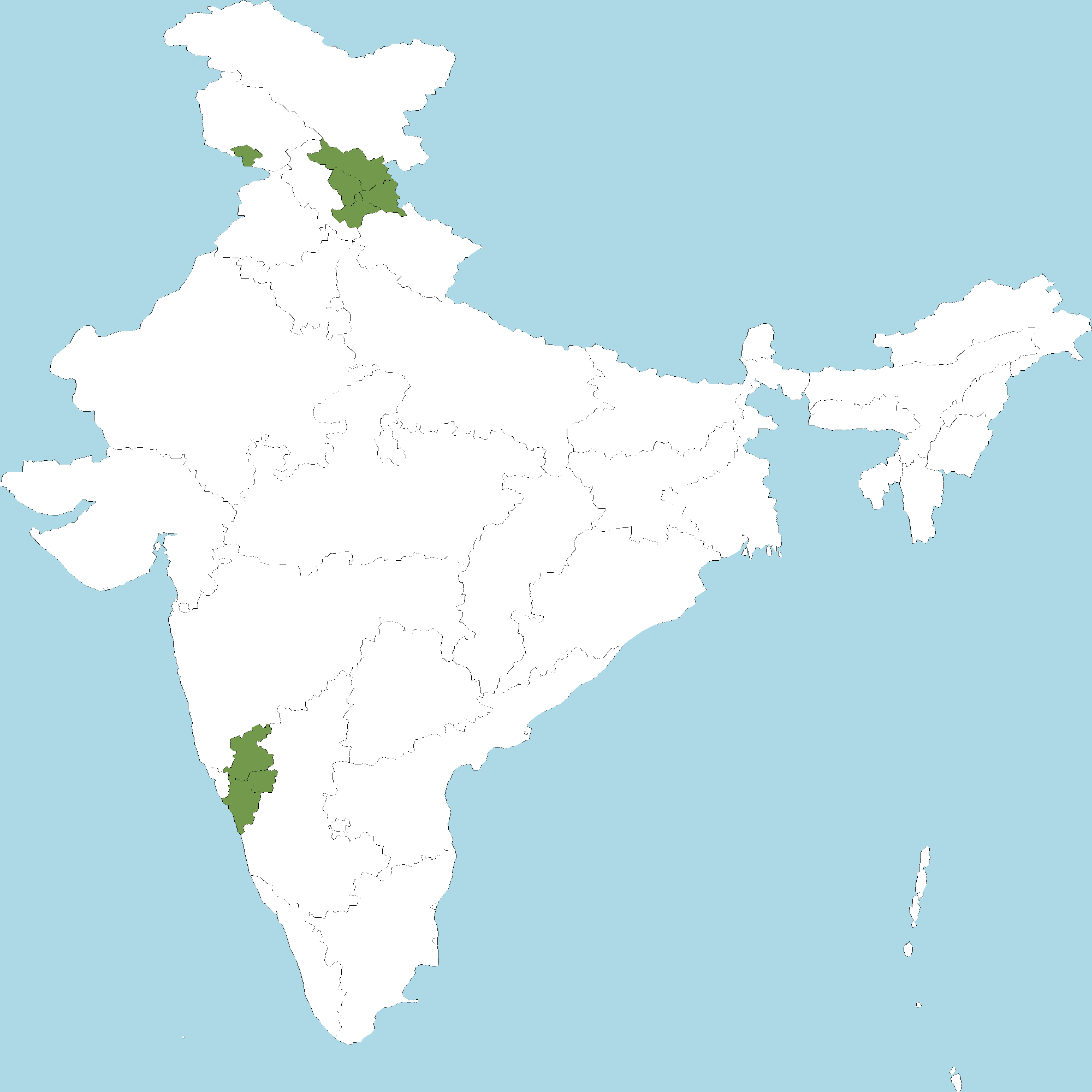 • Karnataka : Belagavi district, Dharwad district, Uttara Kannada district