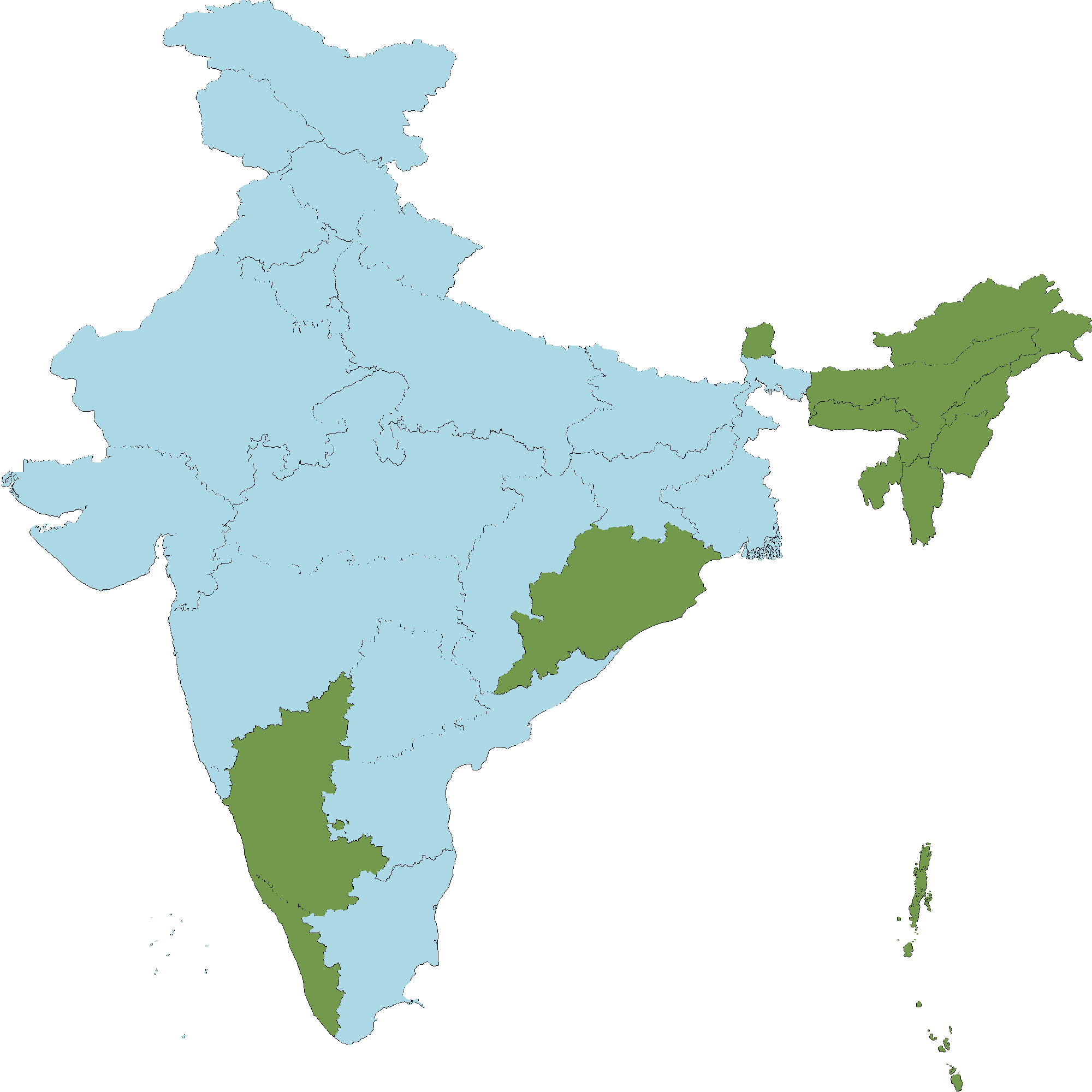 - Karnataka : Uttara Kannada district, Udupi district, Dakshina Kannada district