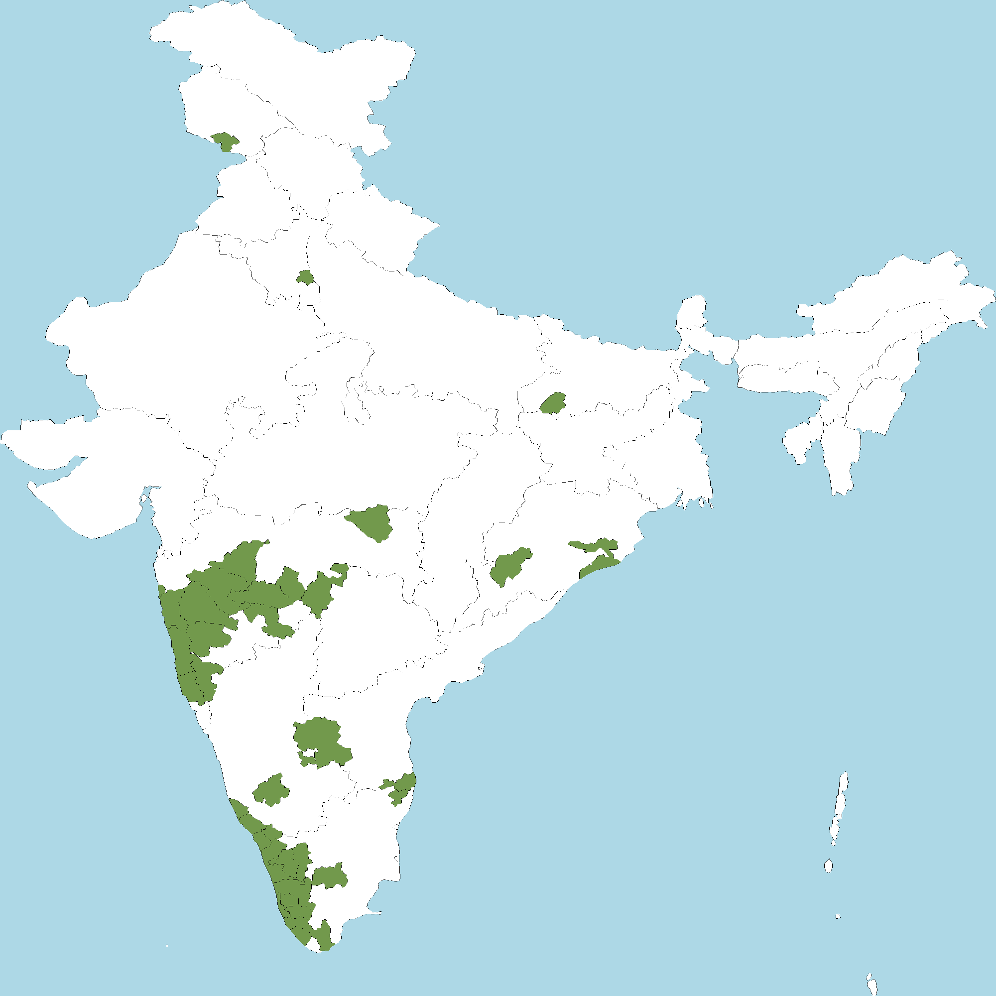 - Tamil Nadu : Coimbatore district, Dindigul district, The Nilgiri district, Kancheepuram (Changalpattu-CGP) district, Tirunelveli district, Thiruvallur district, Tiruchirapalli district