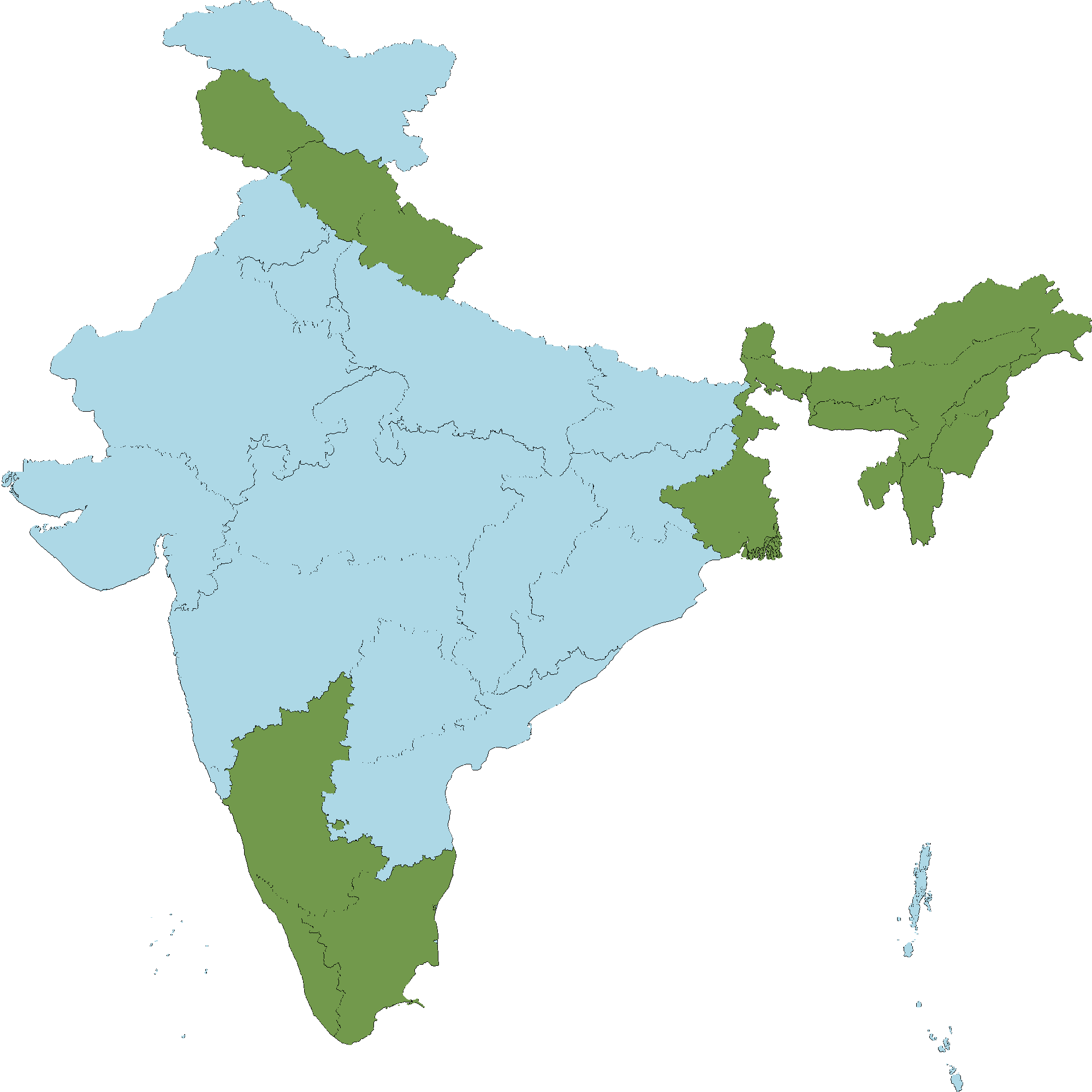 - West Bengal : Darjeeling district, Jalpaiguri district