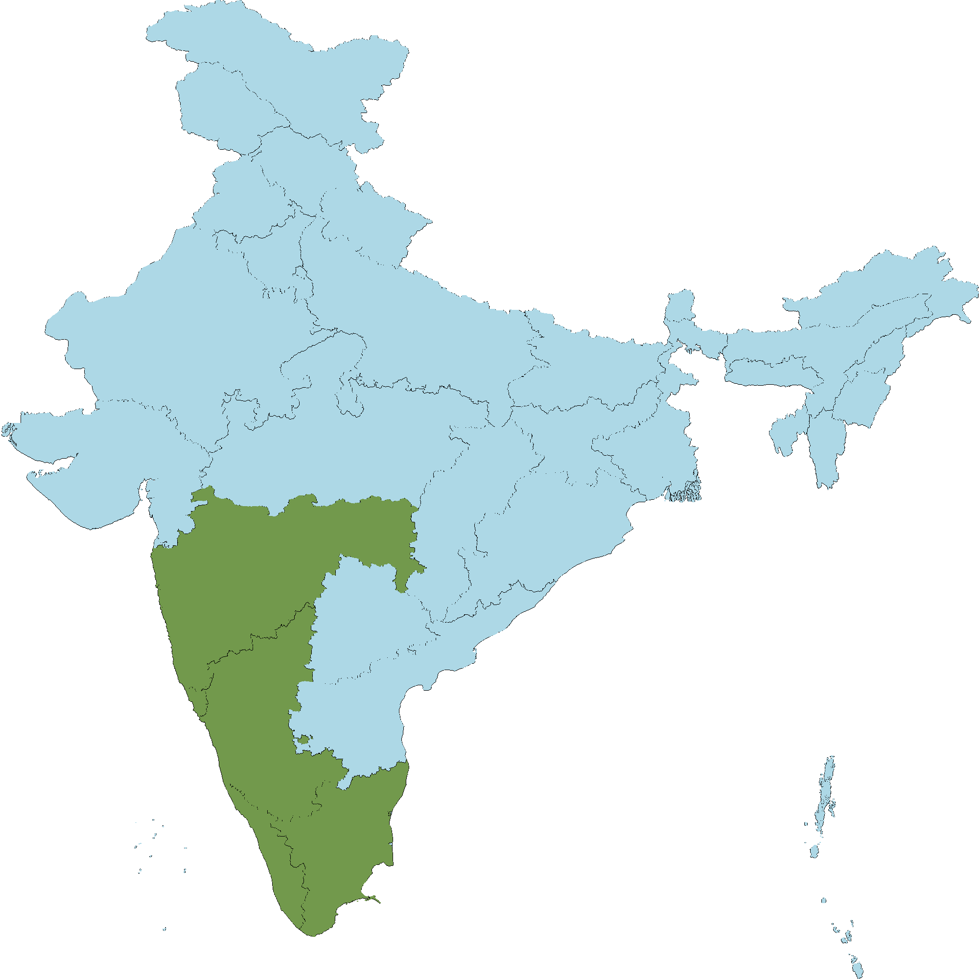 • Karnataka : Dakshina Kannada district, Hassan district, Kodagu (Coorg) district, Mysuru district, Shivamogga district, Uttara Kannada district