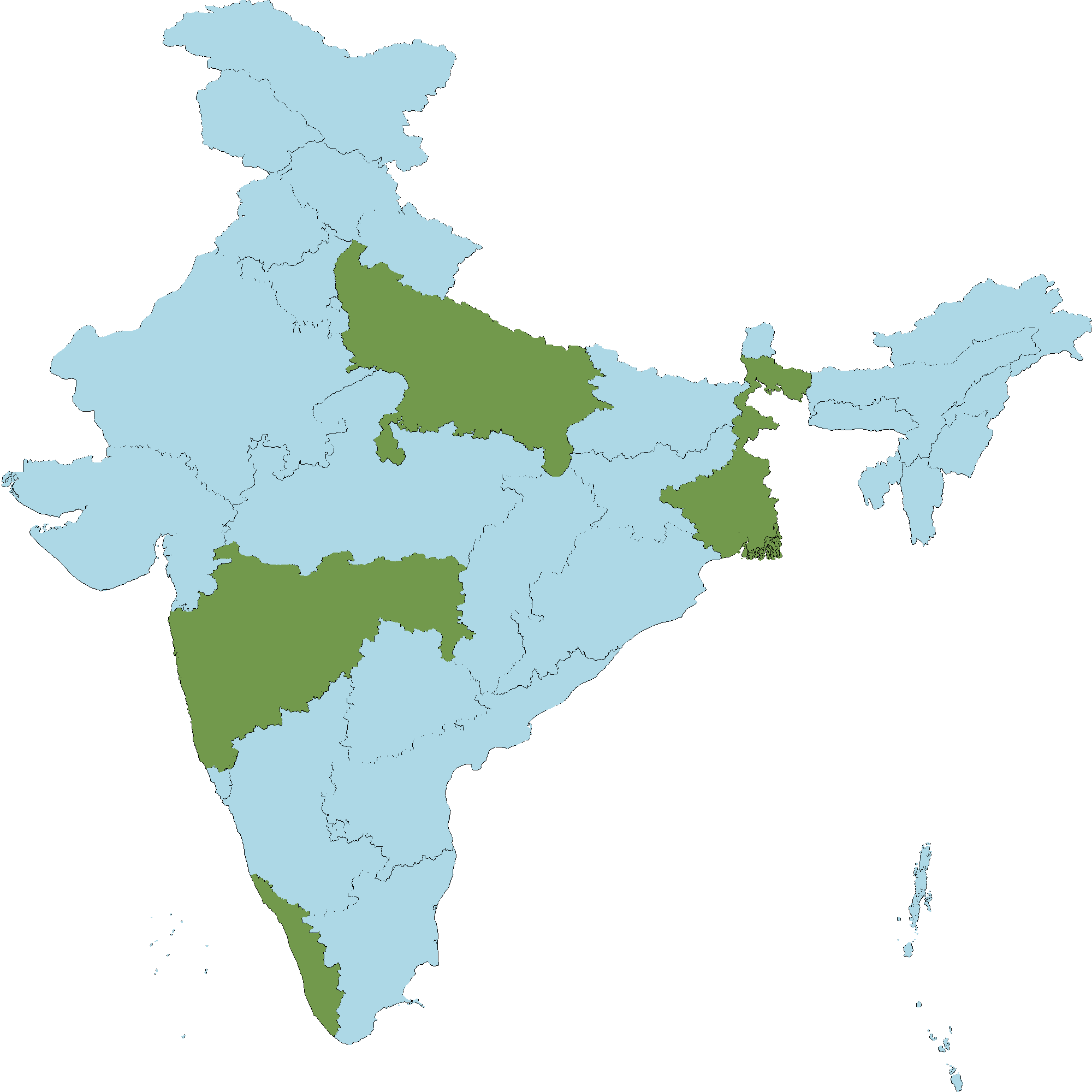 - West Bengal : Bankura, Burdwan, Hooghly, Howrah, Malda, Murshidabad, Nadia, Purulia, 24-Parganas