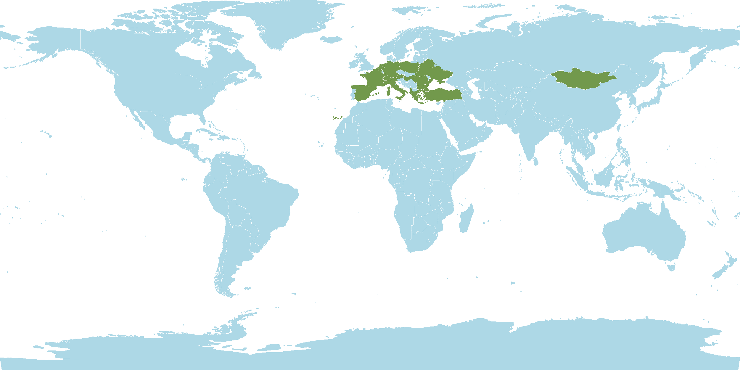 - World Distribution : Albania, Altay, Austria, Baltic States, Belarus, Belgium, Bulgaria, Central European Russia, Corse, Czechoslovakia, East European Russia, France, Germany, Great Britain, Greece, Hungary, Italy, Krasnoyarsk, Krym, Lebanon-Syria, Mongolia, Netherlands, North Caucasus, Poland, Romania, Sardegna, South European Russia, Spain, Switzerland, Transcaucasus, Turkey, Turkey-in-Europe, Ukraine, West Siberia, Yugoslavia