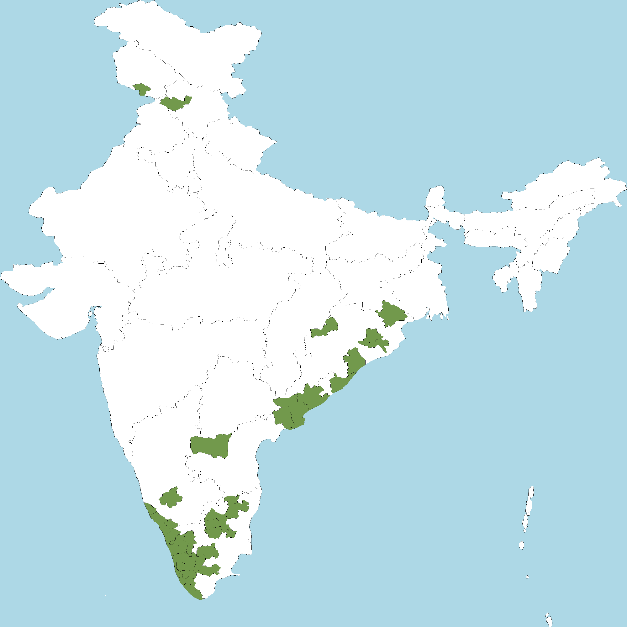 - Kerala : All districts of Kerala