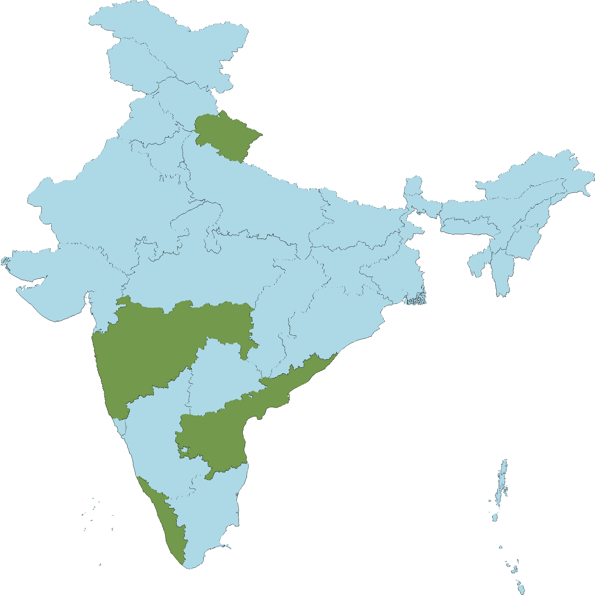 • Kerala : Kasaragod district, Kannur district, Kottayam district, Alappuzha district