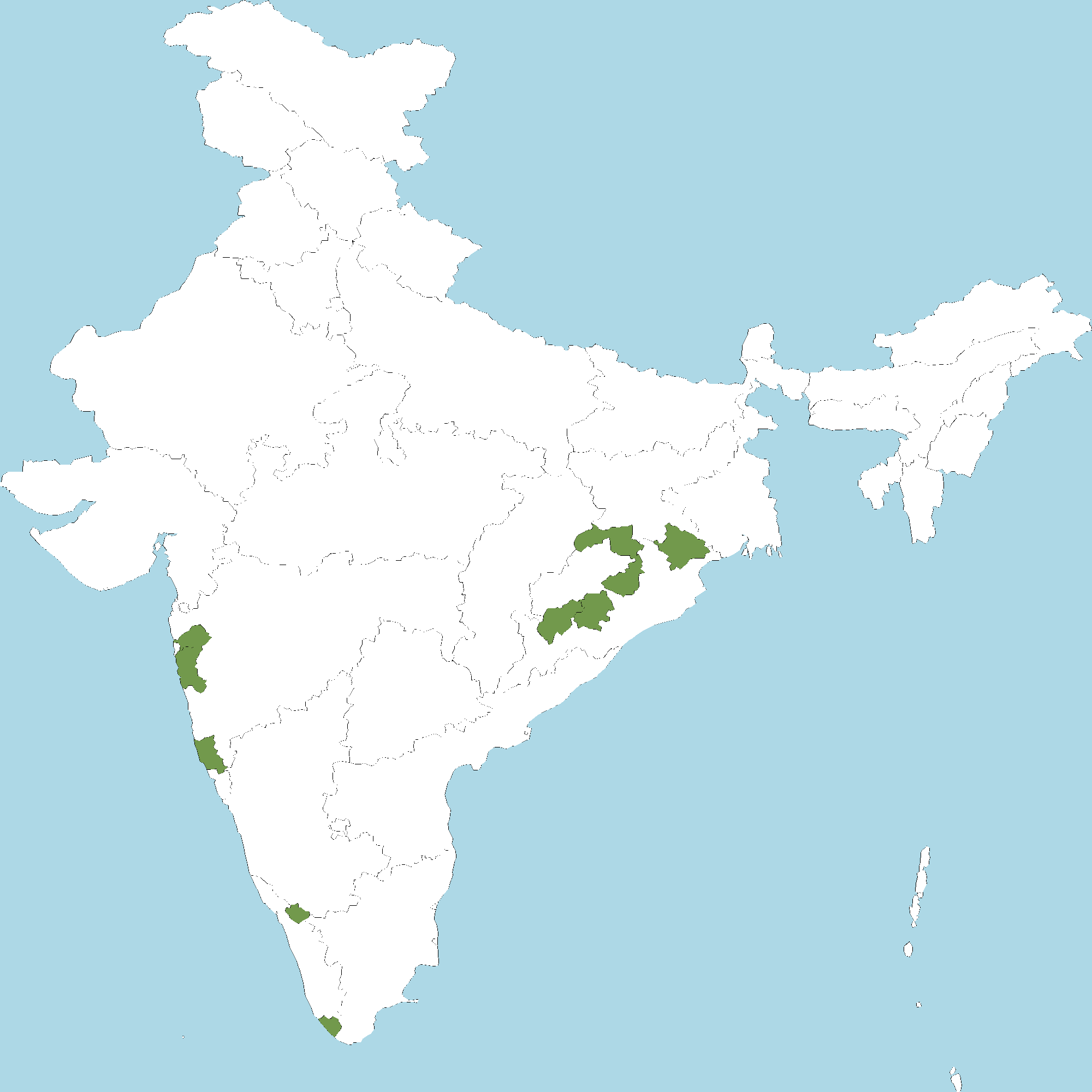 • Kerala : Wayanad district, Thiruvananthapuram district