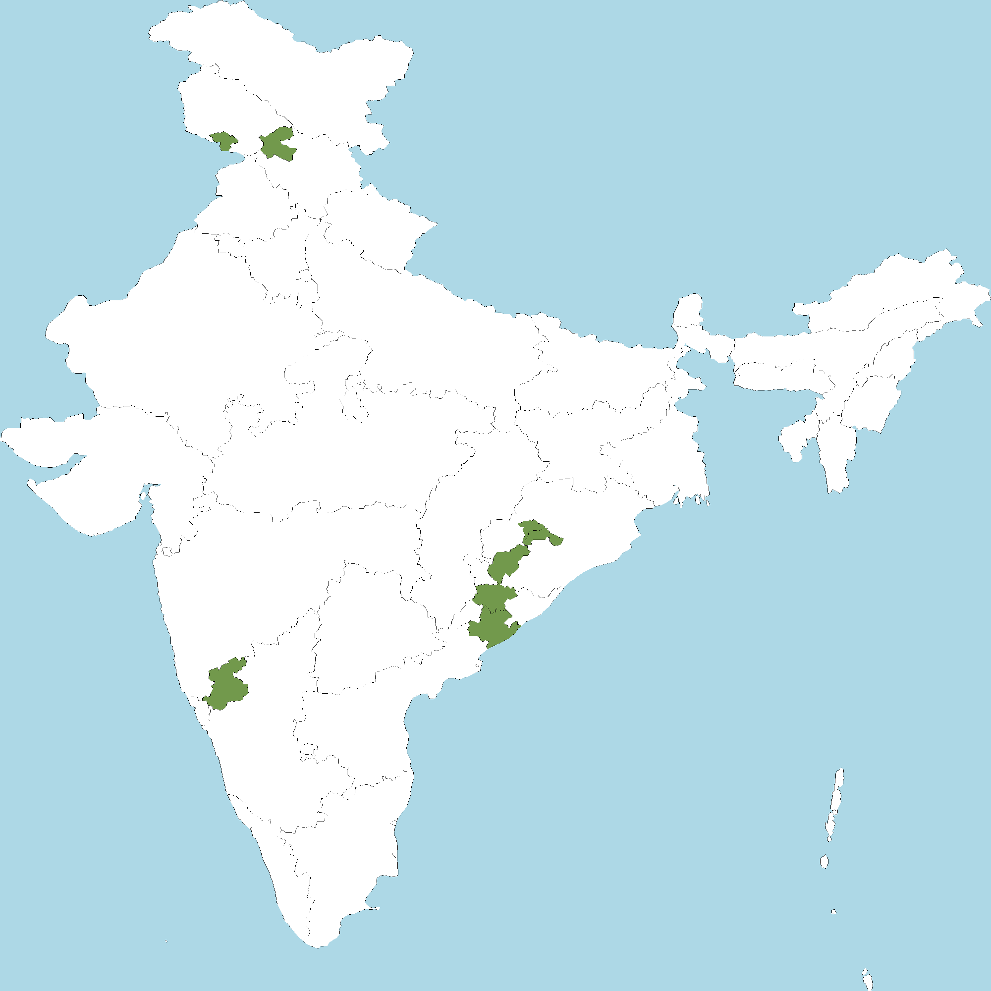 • Odisha : Koraput district, Boudh district, Subarnapur district, Kalahandi district