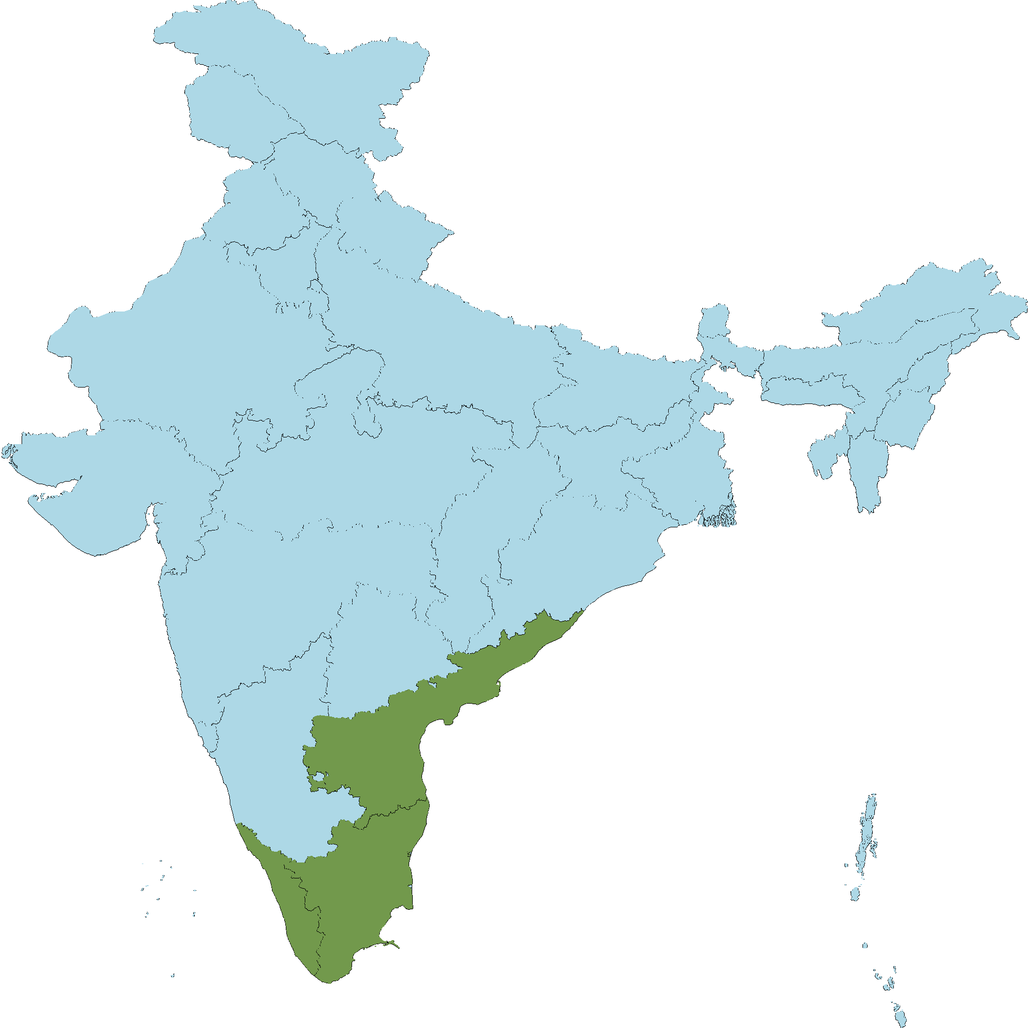 • Tamil Nadu : Coimbatore district, Cuddalore district, Kancheepuram (Changalpattu-CGP) district, Ramanathapuram district, Salem district, Thanjavur district, Thiruvallur district, Tiruchirapalli district, Tirunelveli district, Villipuram district