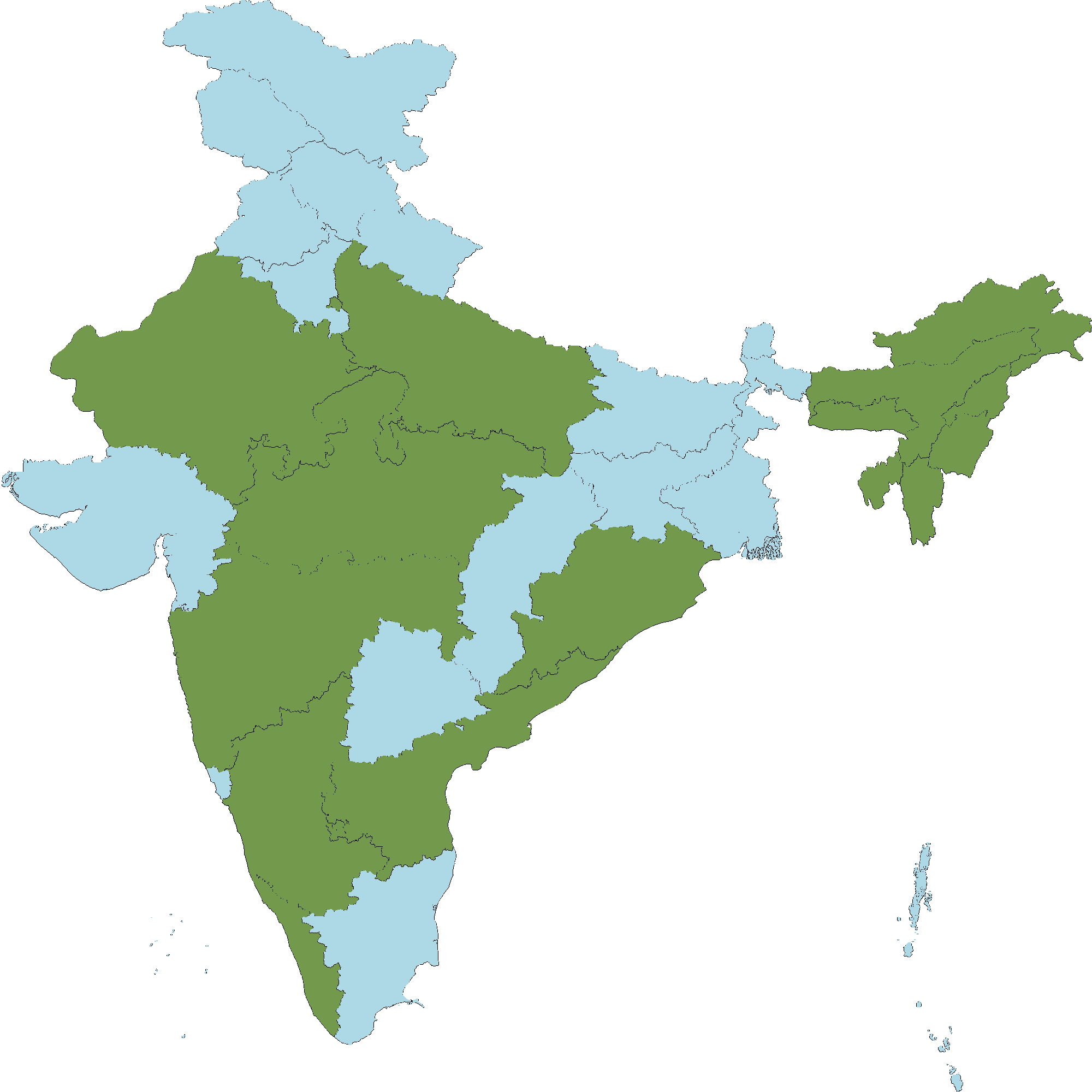 - Karnataka : Belagavi district, Chikkamagaluru district, Davanagare district, Mysuru district, Tumakuru district, Raichur district, Uttara Kannada district, Dakshina Kannada district, Udupi district