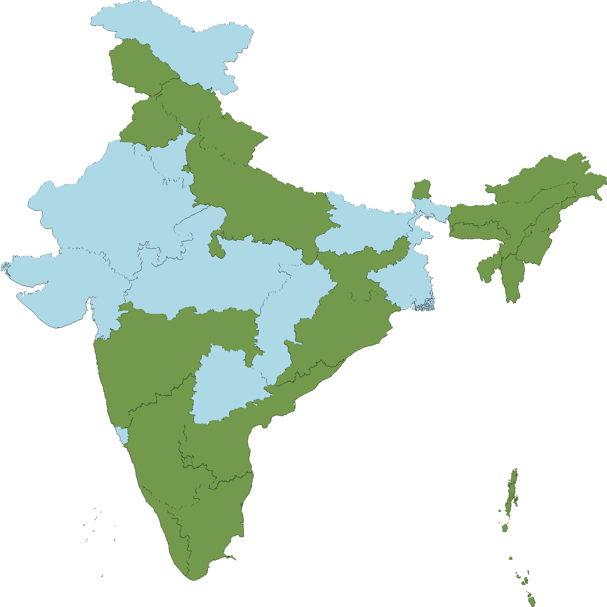 - Karnataka : Bengaluru district, Dakshina Kannada district, Davanagare district, Hassan district, Mysuru district, Tumakuru district, Udupi district
