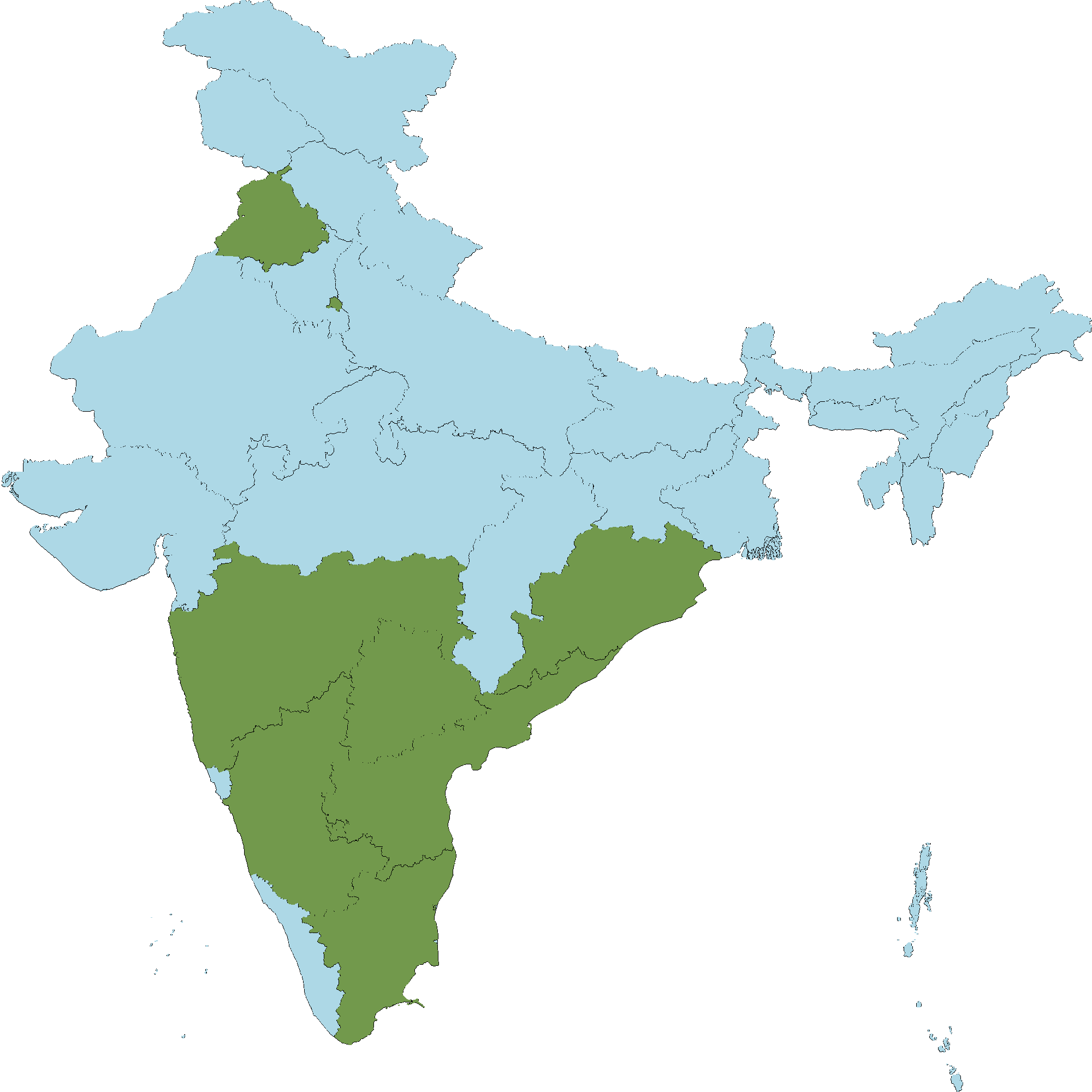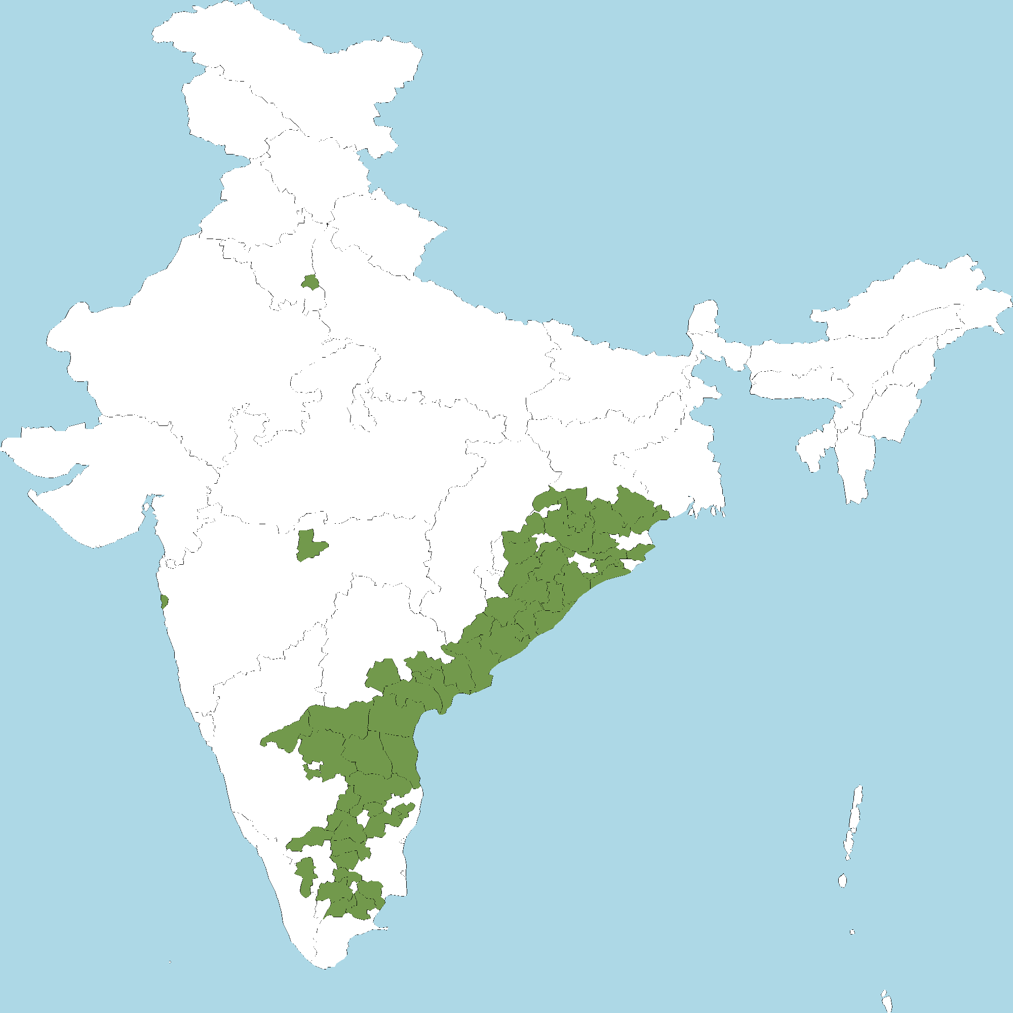 - Andhra Pradesh : Anantapur district, Chittoor district, Y.S.R. Kadapa district, East Godavari district, Guntur district, Krishna district, Kurnool district, S.P.S. Nellore district, Prakasam district, Srikakulam district, Visakhapatnam district, Vizianagaram district, West Godavari district