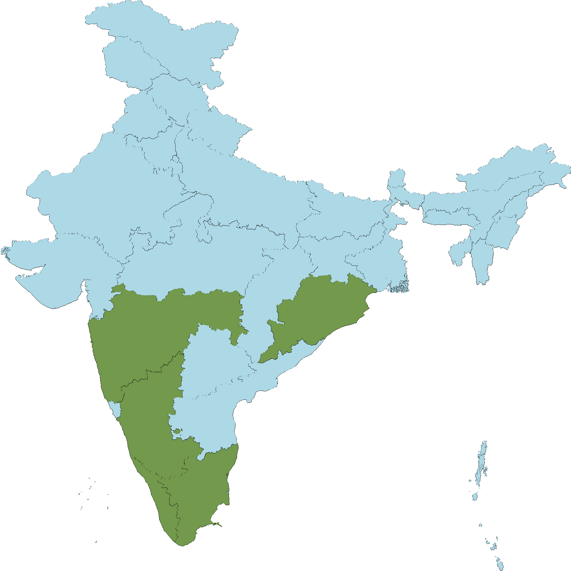 • Tamil Nadu : Dindigul district, The Nilgiri district, Coimbatore district, Dharmapuri district, Kanyakumari district, Salem district, Theni district, Tirunelveli district