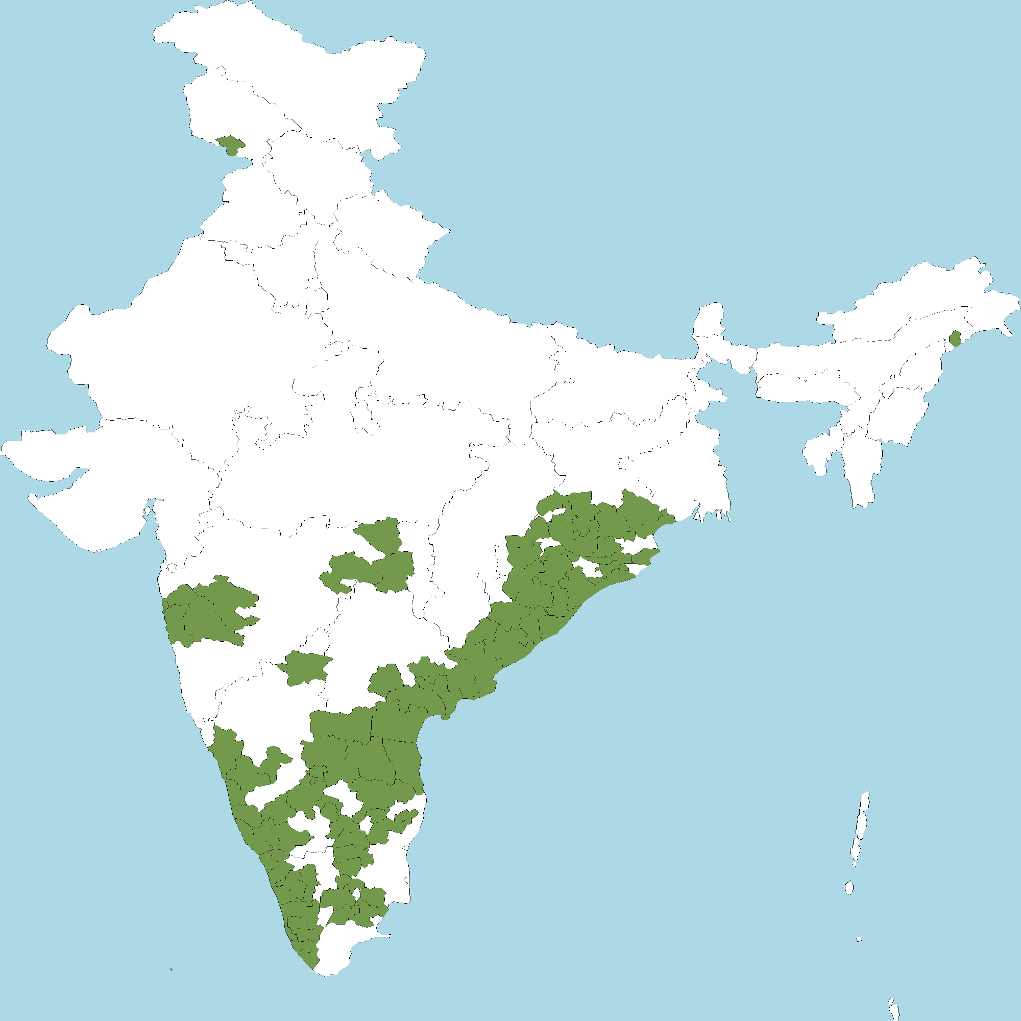 - Kerala : All districts of Kerala