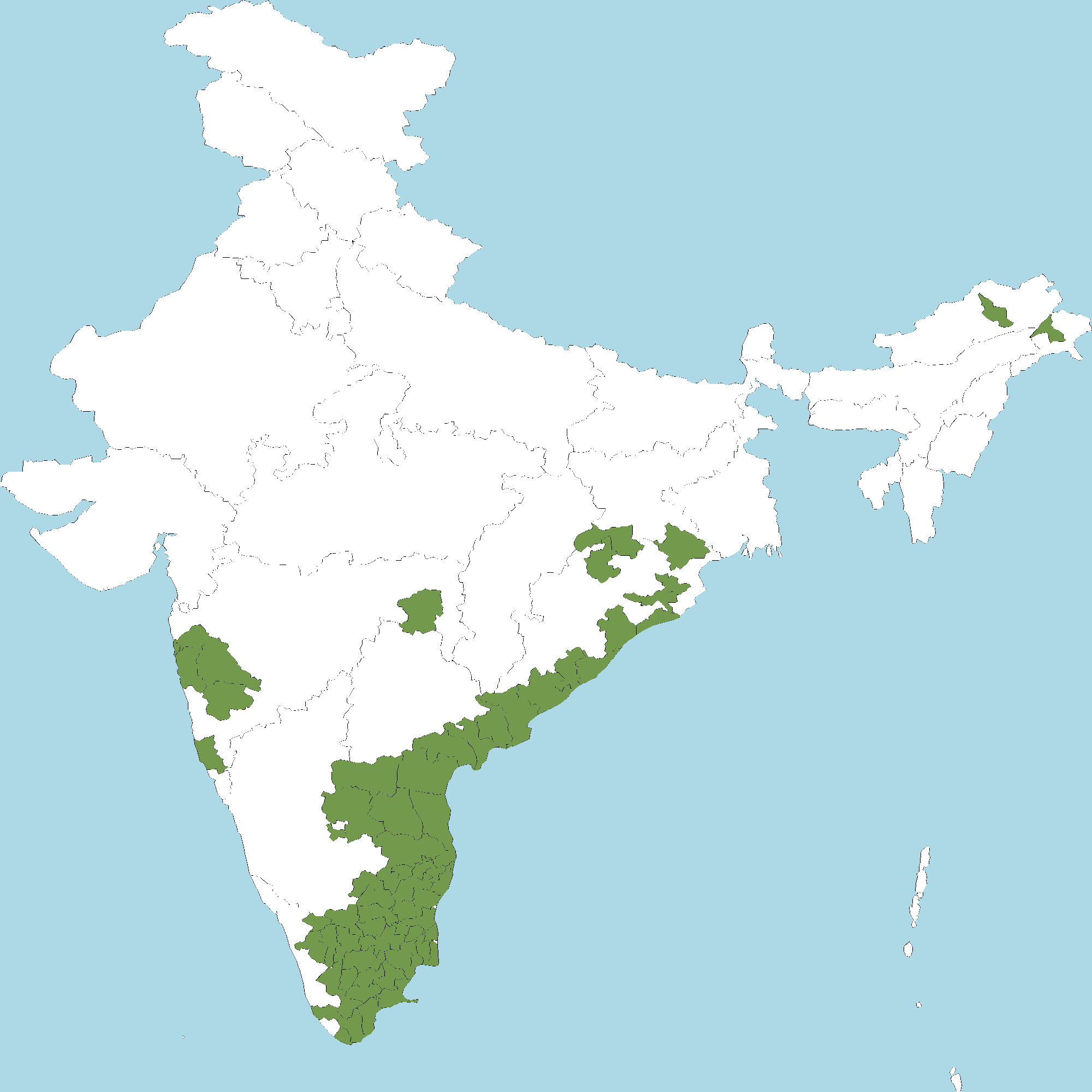 - Native : Bangladesh, Cambodia, China, Bhutan, Hainan, India, Laos, Myanmar, Sri Lanka, Thailand, Vietnam