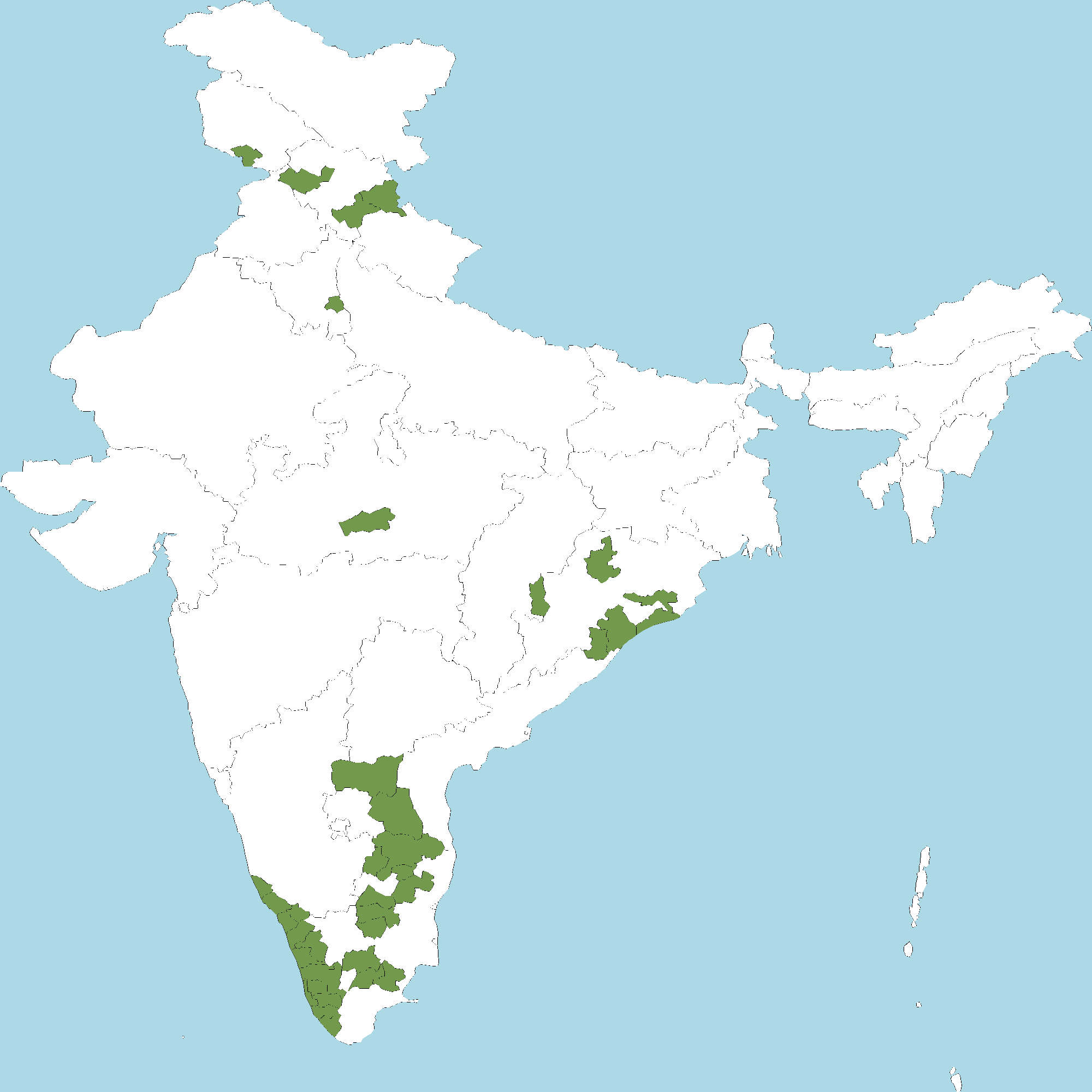 - Kerala : All districts of Kerala