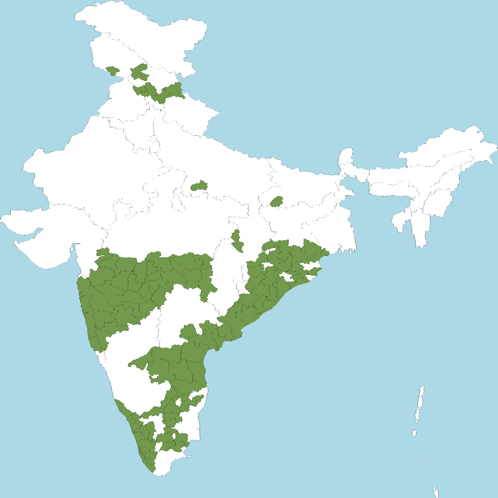 - Andhra Pradesh : Anantapur district, Chittoor district, Y.S.R. Kadapa district, East Godavari district, Guntur district, Krishna district, Kurnool district, S.P.S. Nellore district, Prakasam district, Srikakulam district, Visakhapatnam district, Vizianagaram district, West Godavari district