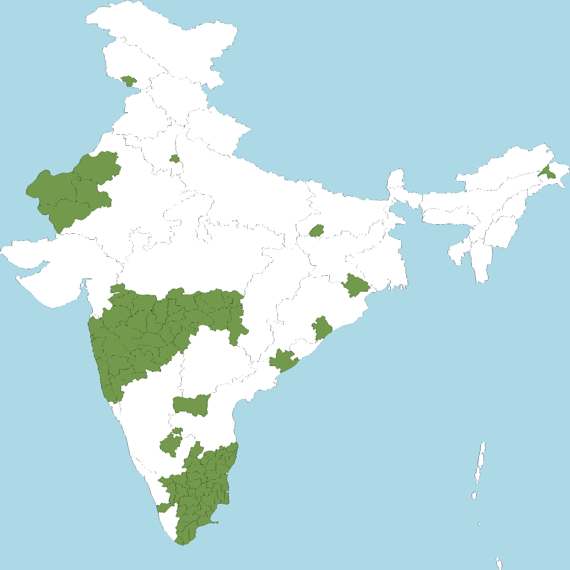 - Tamil Nadu : All districts of Tamil Nadu