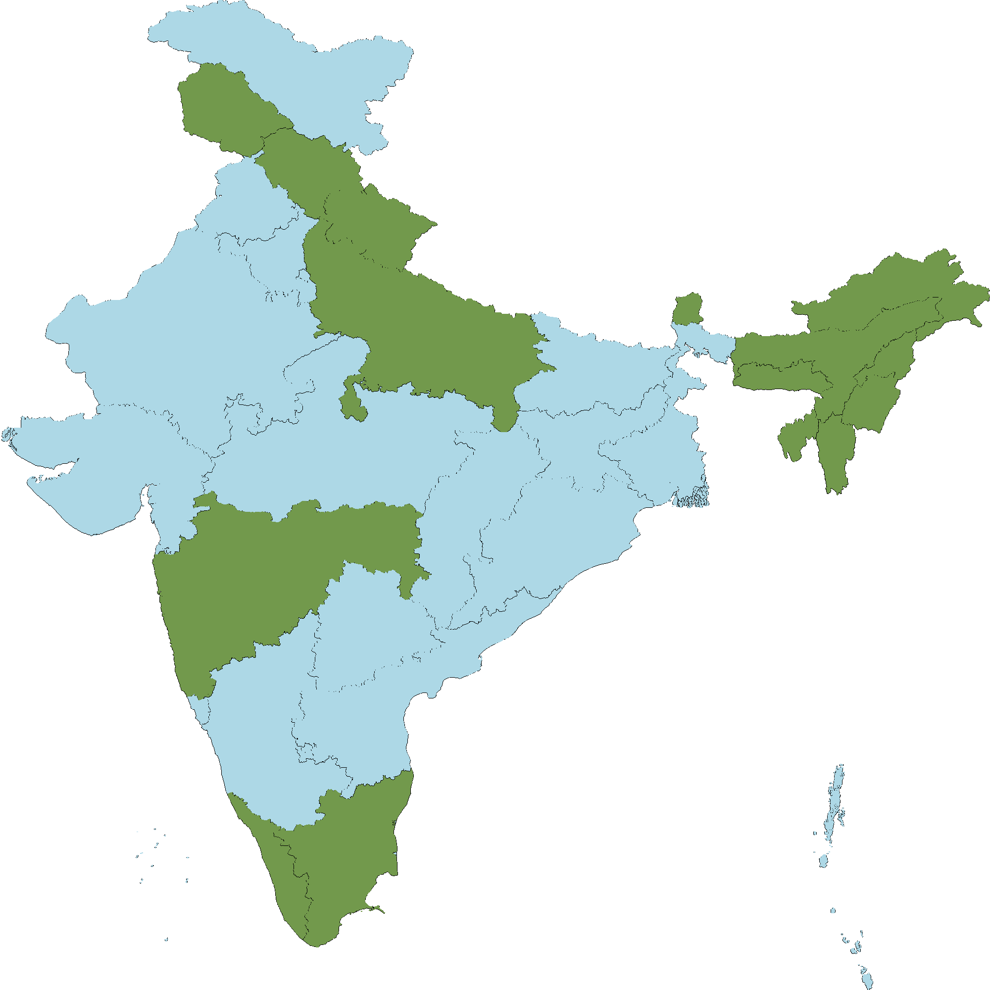 - Tamil Nadu : Coimbatore district, Madurai district, The Nilgiri district, Ramanathapuram district, Salem district