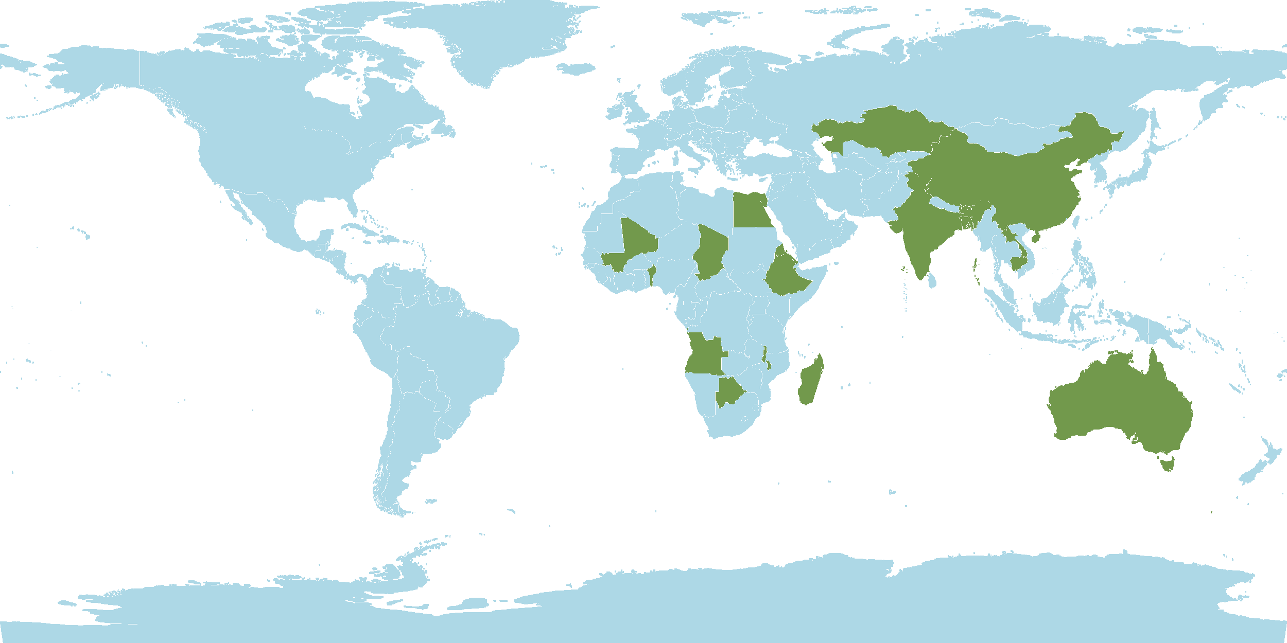 - Native : Andaman Islands, Angola, Australia, Bangladesh, Benin, Bhutan, Botswana, Burkina, Cambodia, Cape Provinces, Chad, China, Egypt, Eritrea, Ethiopia, Free State, India, Inner Mongolia, Jawa, Kazakhstan, Korea, KwaZulu-Natal, Laos, Madagascar, Malawi, Mali, M