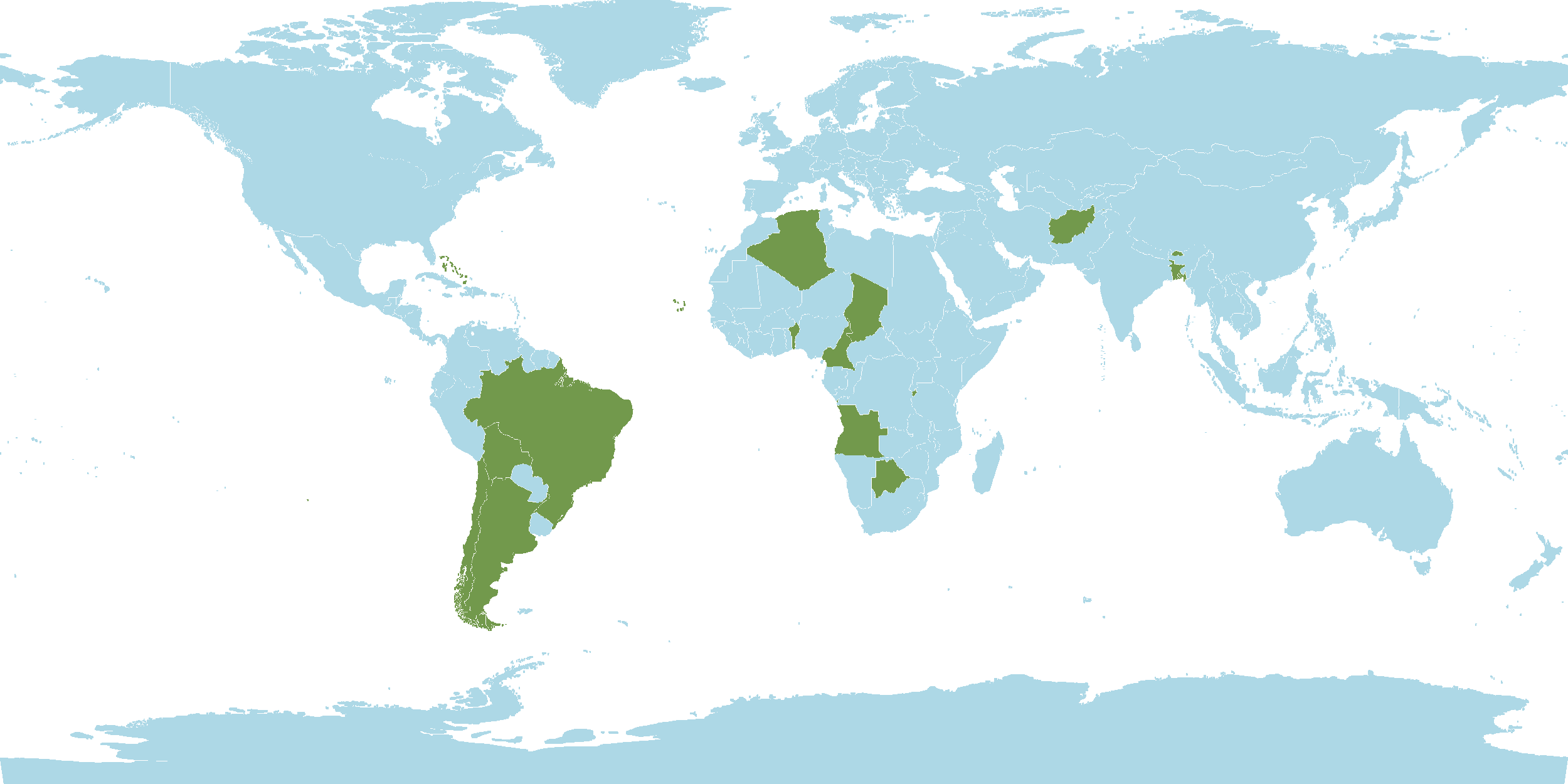 - Native : Afghanistan, Algeria, Andaman and Nicobar Islands, Angola, Argentina, Arizona, Aruba, Ascension, Bahamas, Bangladesh, Benin, Bhutan, Bolivia, Botswana, Brazil, Burkina, Burundi, California, Cameroon, Canary Islands, Cape Provinces, Cape Verde, Chad, Chile