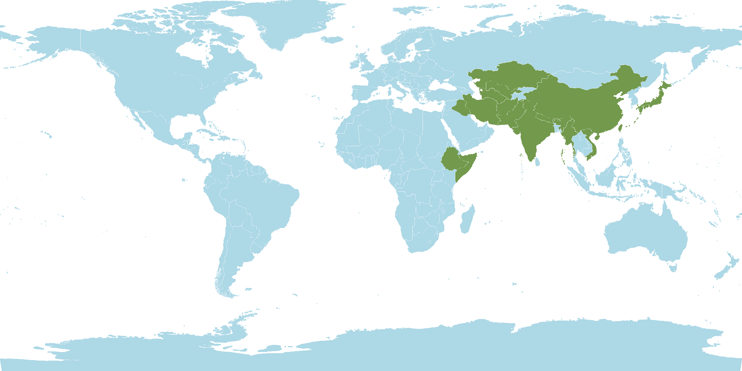 - Native : Afghanistan, Bhutan, China, Ethiopia, India, Iran, Iraq, Japan, Kazakhstan, Kirgizstan, Korea, Myanmar, Nansei-shoto, Nepal, North Caucasus, Pakistan, Somalia, Tadzhikistan, Taiwan, Tibet, Transcaucasus, Turkmenistan, Uzbekistan, Vietnam, Xinjiang