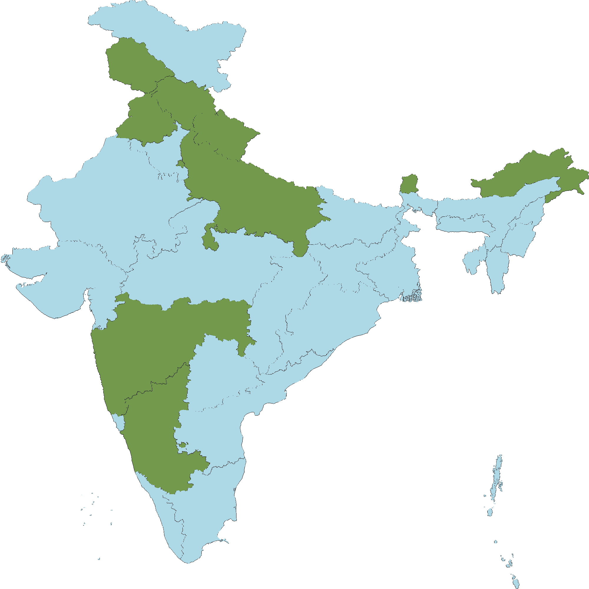 -  Maharashtra : Ahmednagar district, Aurangabad district, Kolhapur district, Nanded district, Nashik district, Pune district, Satara district
