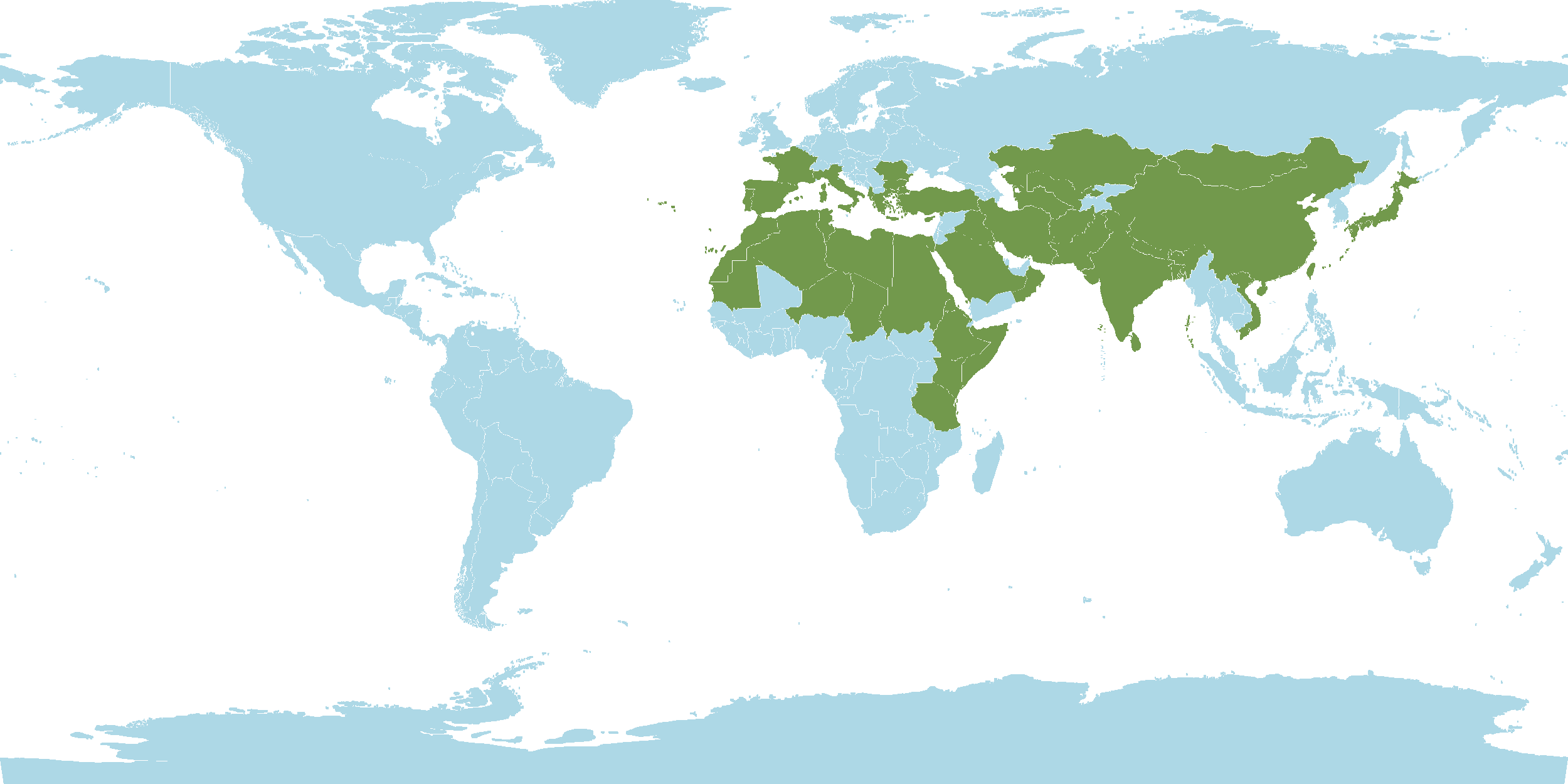 -  World Distribution : Afghanistan, Albania, Algeria, Azores, Baleares, Bangladesh, Bhutan, Bulgaria, Canary Islands, Chad, China, Corse, Cyprus, East Aegean Islands, Egypt, Eritrea, Ethiopia, France, Great Britain, Greece, Gulf States, India, Inner Mongolia, Iran, Iraq, Italy, Japan, Kazakhstan, Kenya, Kirgizstan, Korea, Kriti, Kuwait, Lebanon-Syria, Libya, Madeira, Mauritania, Mongolia, Morocco, Nansei-shoto, Nepal, Niger, North Caucasus, Oman, Pakistan, Palestine, Portugal, Qinghai, Romania, Sardegna, Saudi Arabia, Sicilia, Sinai, Socotra, Somalia, Spain, Sri Lanka, Sudan, Tadzhikistan, Taiwan, Tanzania, Tibet, Transcaucasus, Tunisia, Turkey, Turkey-in-Europe, Turkmenistan, Uzbekistan, Vietnam, Western Sahara, Xinjiang, Yugoslavia