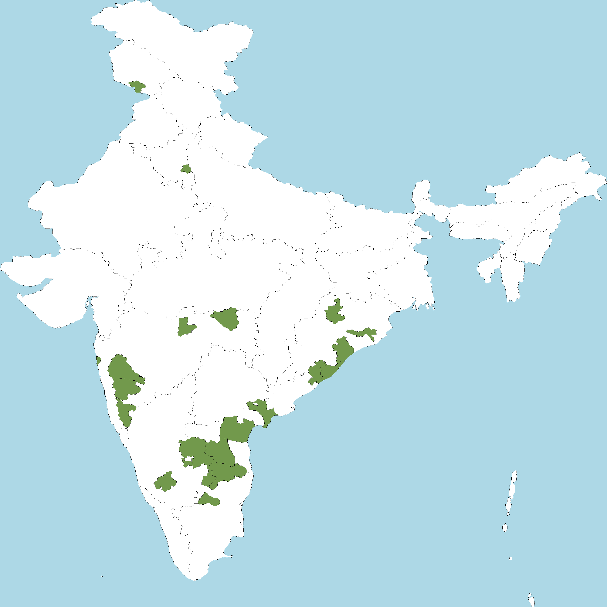 - Andhra Pradesh : Anantapur district, Chittoor district, Y.S.R. Kadapa district, Krishna district, Prakasam district, Vizianagaram district, Srikakulam district