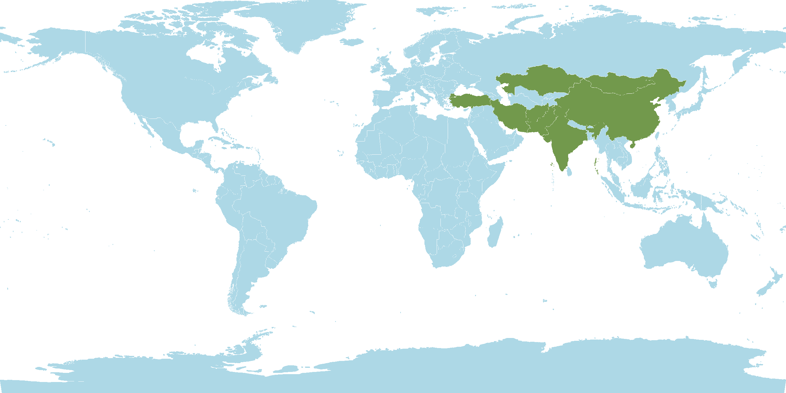 - World Distribution : Afghanistan, Altay, Buryatiya, Central European Rus, China, Chita, East European Russia, India, Inner Mongolia, Iran, Irkutsk, Kazakhstan, Kirgizstan, Krasnoyarsk, Manchuria, Mongolia, North Caucasus, Pakistan, Qinghai, Tibet, Turkey, Tuva, West Siberia, Xinjiang