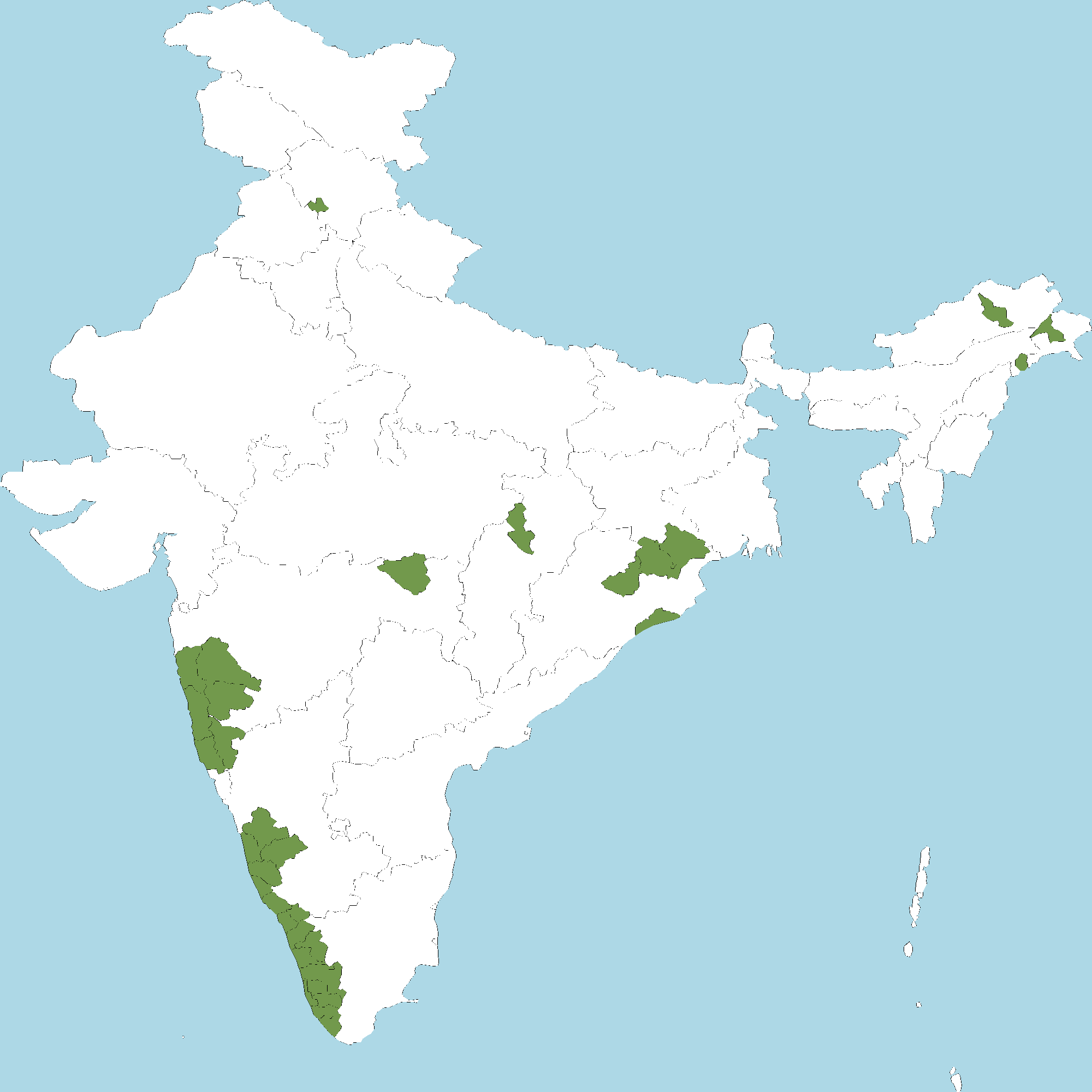 - Kerala : All districts of Kerala