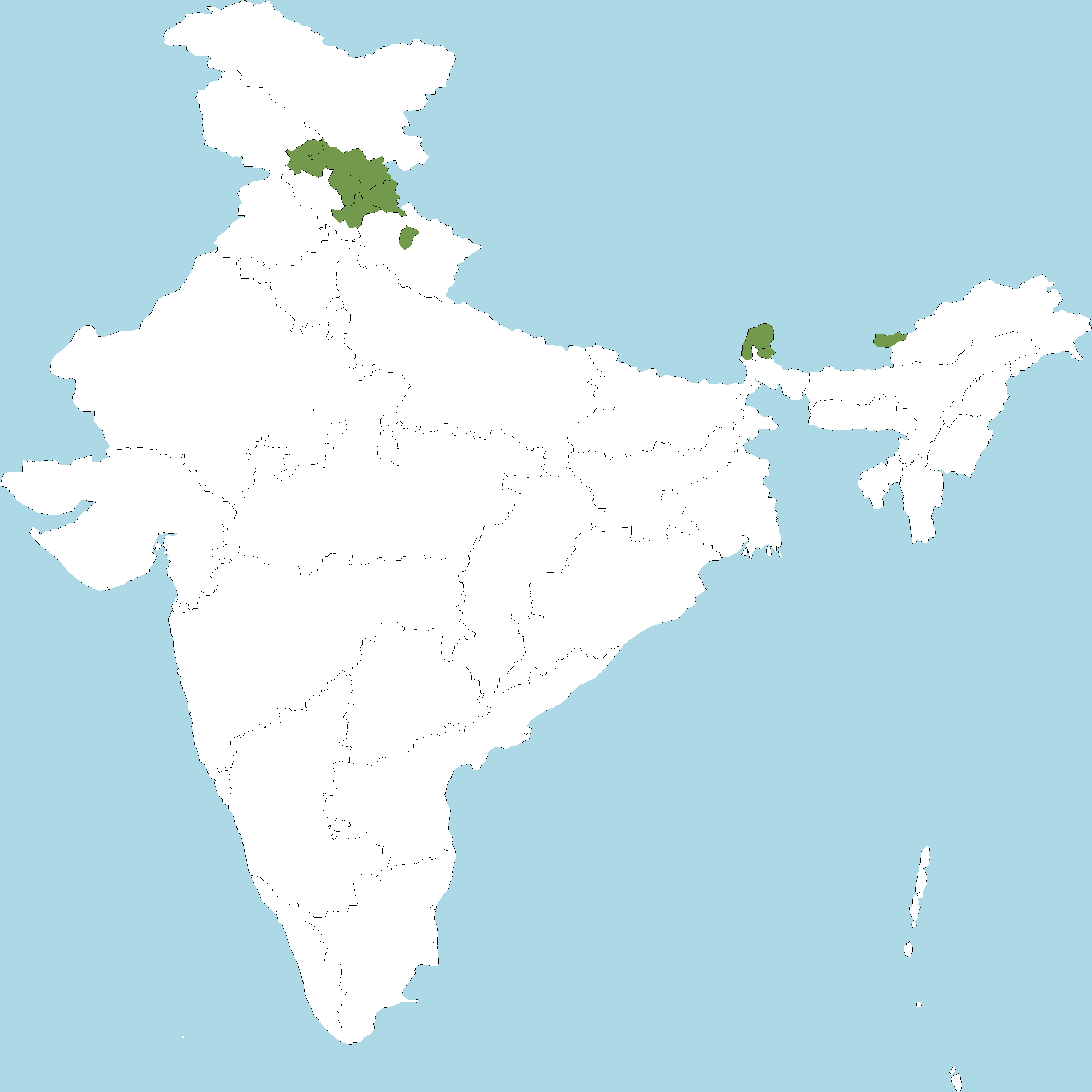 - Native : Afghanistan, Bhutan, China, India, Myanmar, Nepal, Pakistan, Tibet
