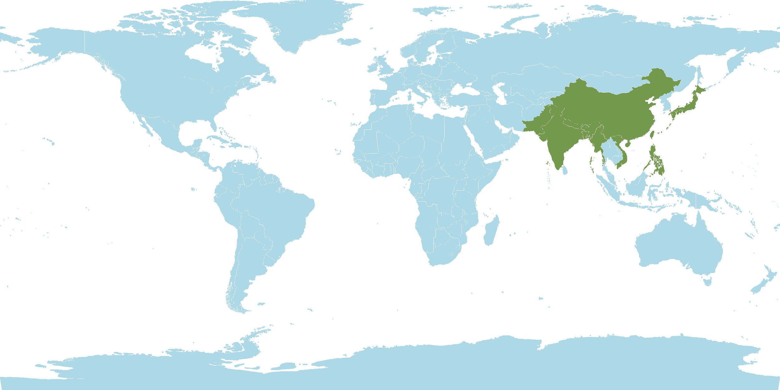 - Native : Amur, Bangladesh, Bhutan, China, Hainan, India, Inner Mongolia, Japan, Korea, Manchuria, Myanmar, Nansei-shoto, Nepal, New Guinea, Pakistan, Philippines, Primorye, Taiwan, Tibet, Vietnam