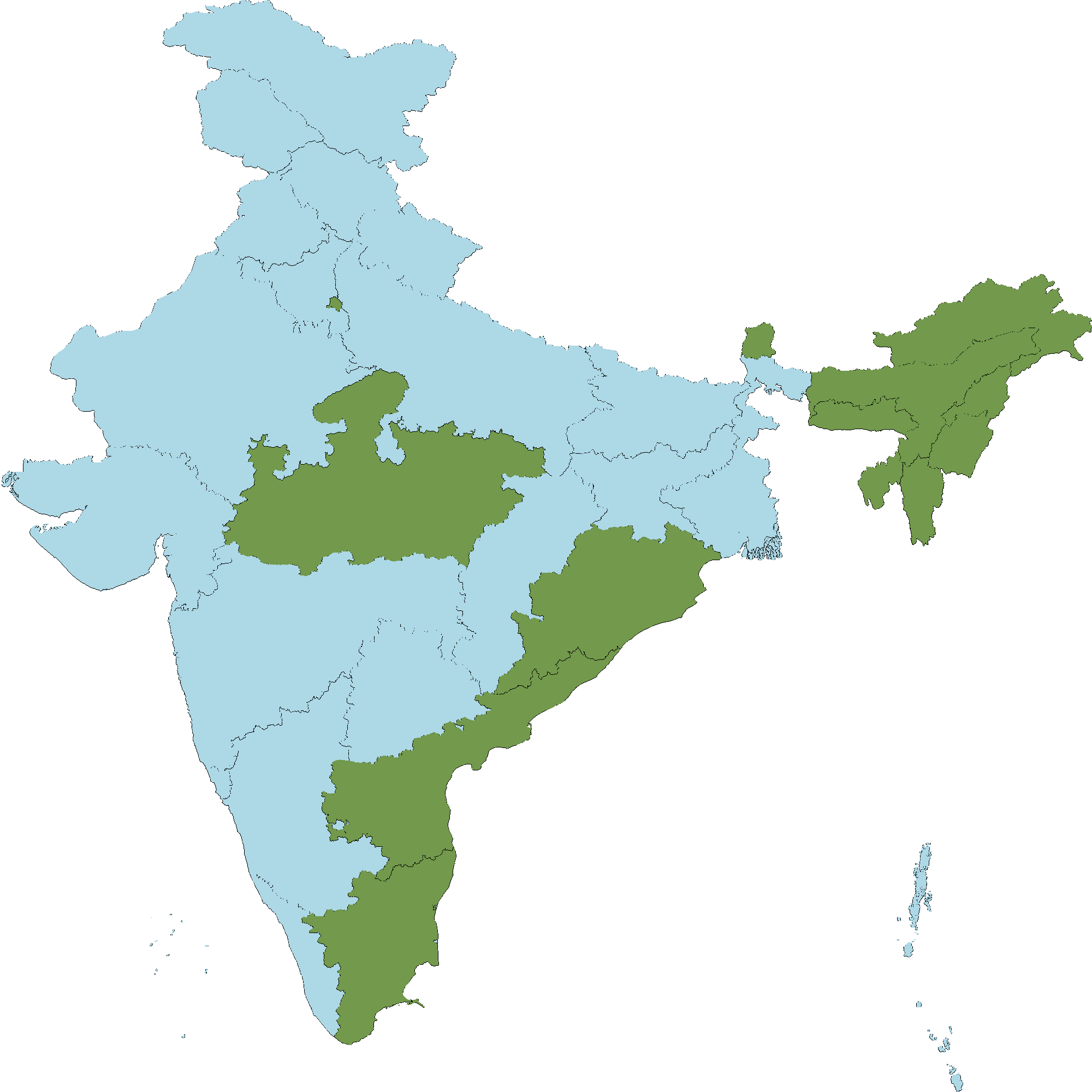 - Andhra Pradesh : Srikakulam district, East Godavari district, Kurnool district, West Godavari district, Vishakapatnam district