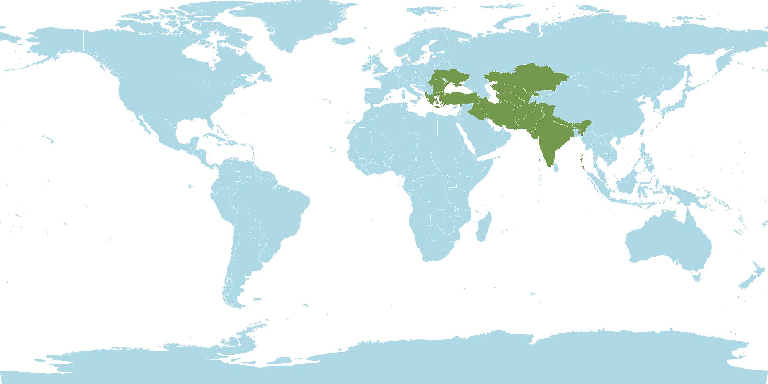 - Native : Afghanistan, Albania, Bhutan, Bulgaria, East Aegean Islands, Greece, India, Iran, Iraq, Kazakhstan, Kirgizstan, Krym, Lebanon-Syria, Nepal, North Caucasus, Pakistan, Romania, Tadzhikistan, Transcaucasus, Turkey, Turkey-in-Europe, Turkmenistan, Ukraine, Uz