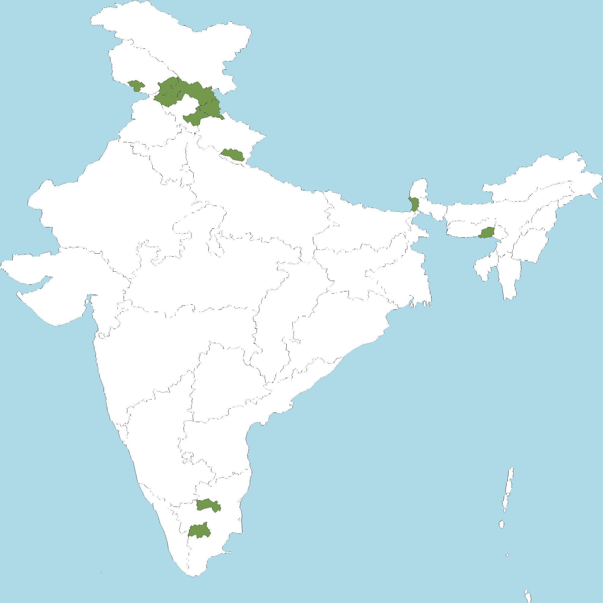 - Himachal Pradesh : Chamba district, Kangra district, Kinnaur district, Lahaul and Spiti district, Shimla district