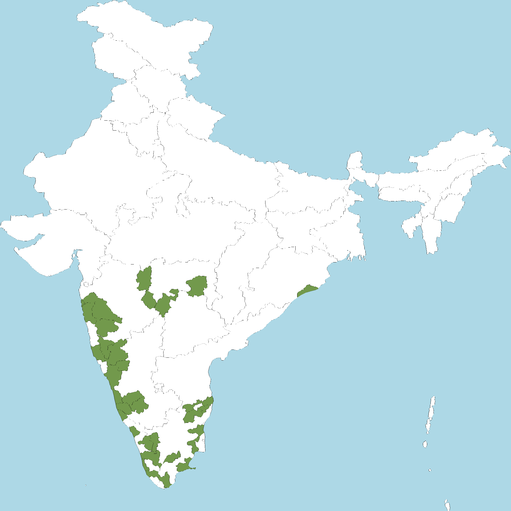 - Karnataka : Belagavi district, Chikkamagaluru district, Dharwad district, Hassan district, Udupi district, Uttara Kannada district, Dakshina Kannada district