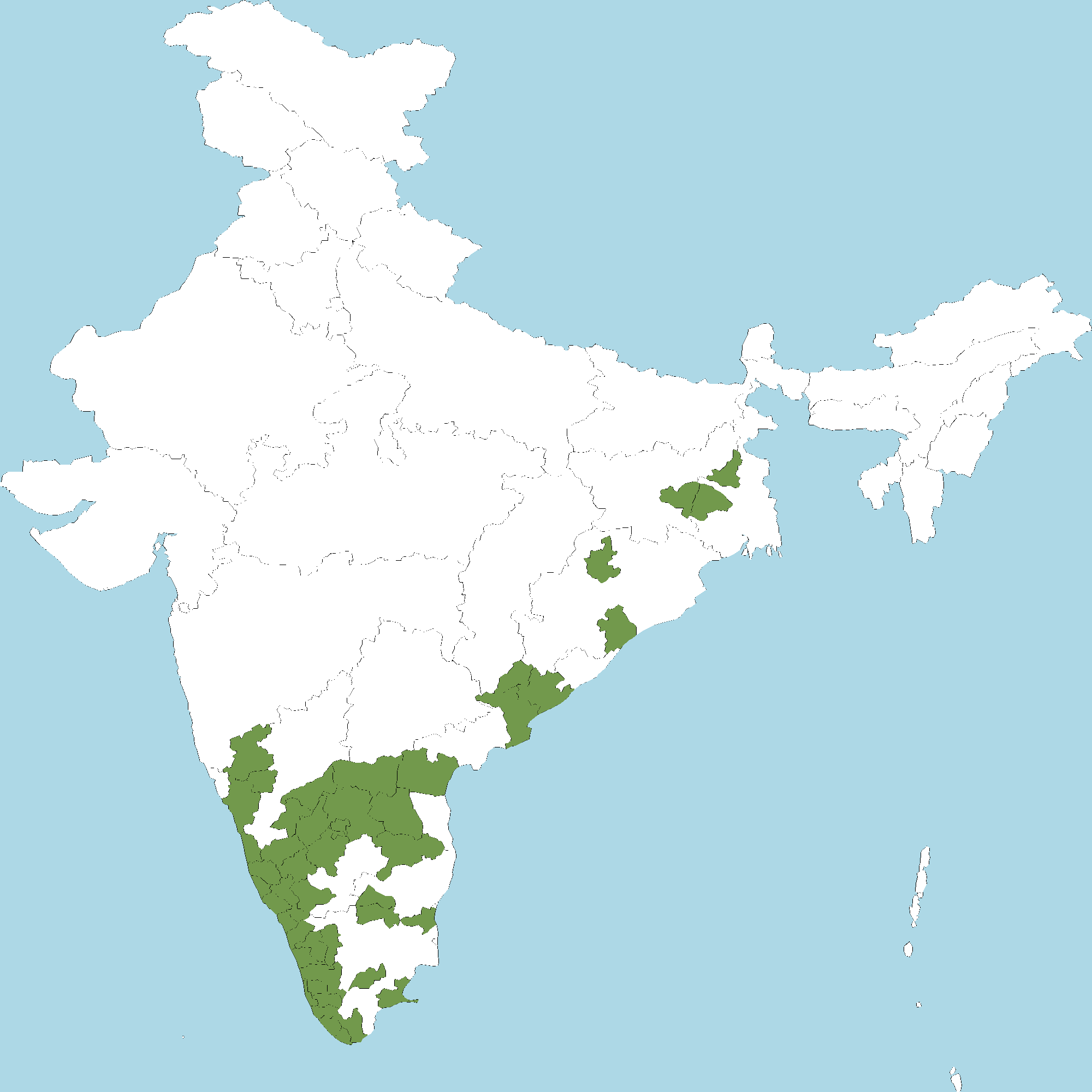 - Kerala : All districts of Kerala
