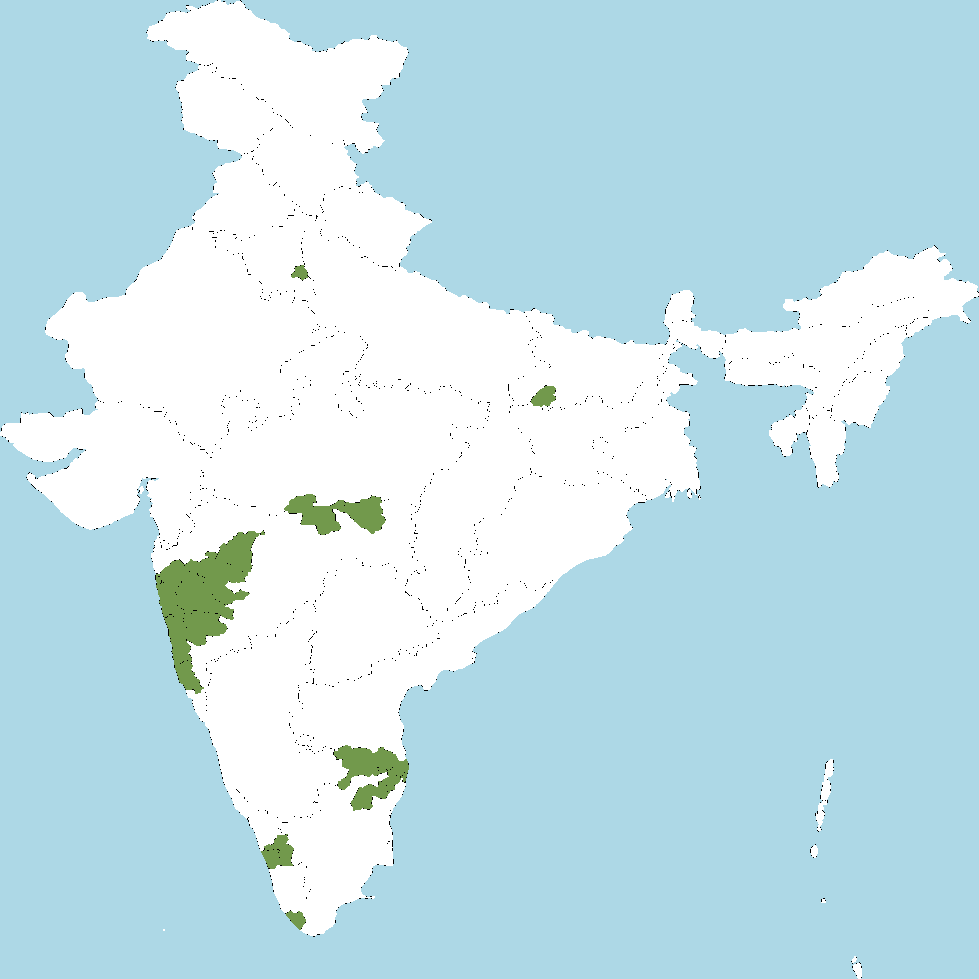 - Kerala : Palakkad district, Thrissur district, Thiruvananthapuram district