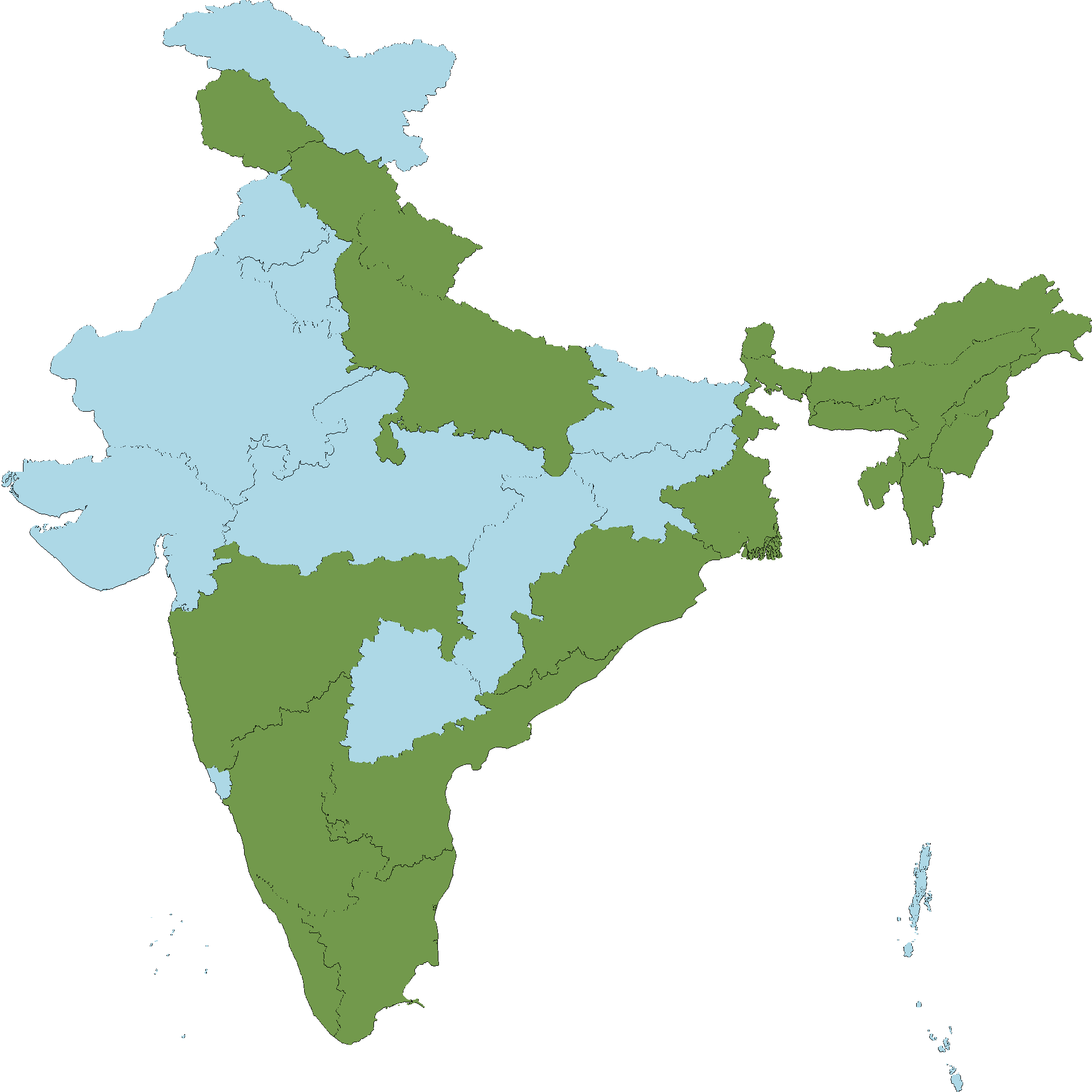 - Odisha : Mayurbhanj district, Angul district, Koraput district, Nayagarh district, Puri district, Dhenkanal district, Sambalpur district, Kalhandi district