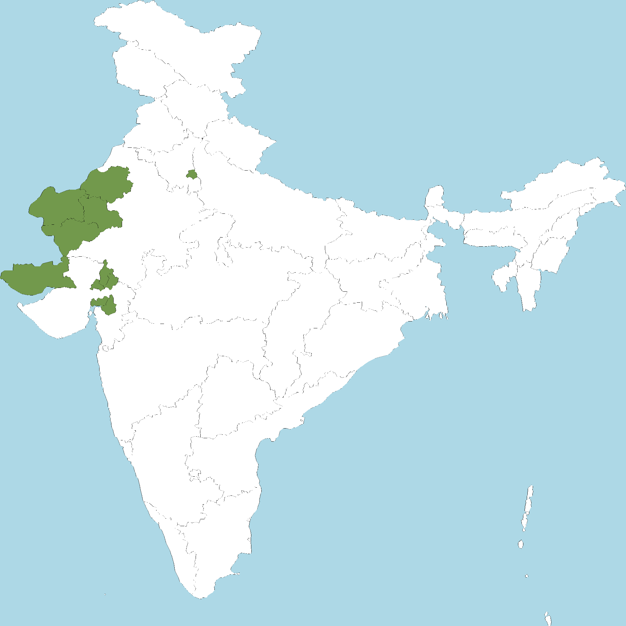 • Rajasthan : Jaisalmer district, Barmer district, Bikaner district, Jodhpur district