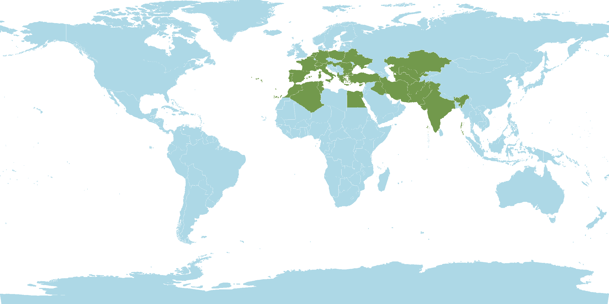 - Native : Afghanistan, Albania, Algeria, Austria, Baleares, Baltic States, Belarus, Belgium, Bhutan, Bulgaria, Canary Islands, Corse, Cyprus, Czechoslovakia, East Aegean Islands, Egypt, France, Germany, Greece, Hungary, India, Iran, Iraq, Italy, Kazakhstan, Kirgizs