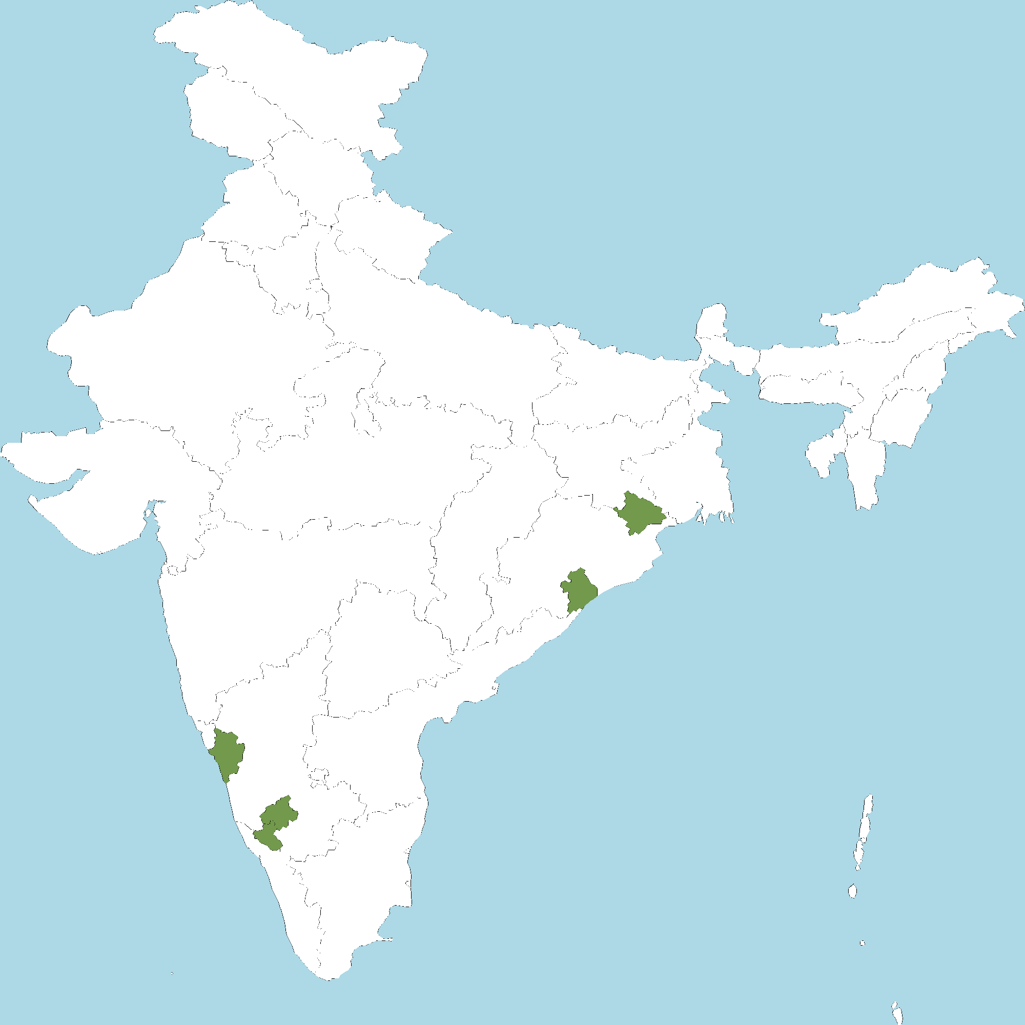 • Karnataka : Chikamagalur district, Hassan district, Kodagu district, Chamrajnagar district, Shimoga district, Uttara Kannada district